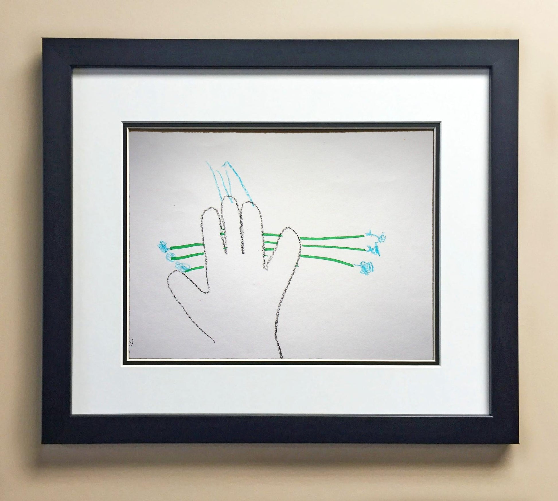 Included with the purchase is the Students Artwork, Frame, double matboard, shatter proof plexiglass, and a ready to hang backerboard with turnbuttons