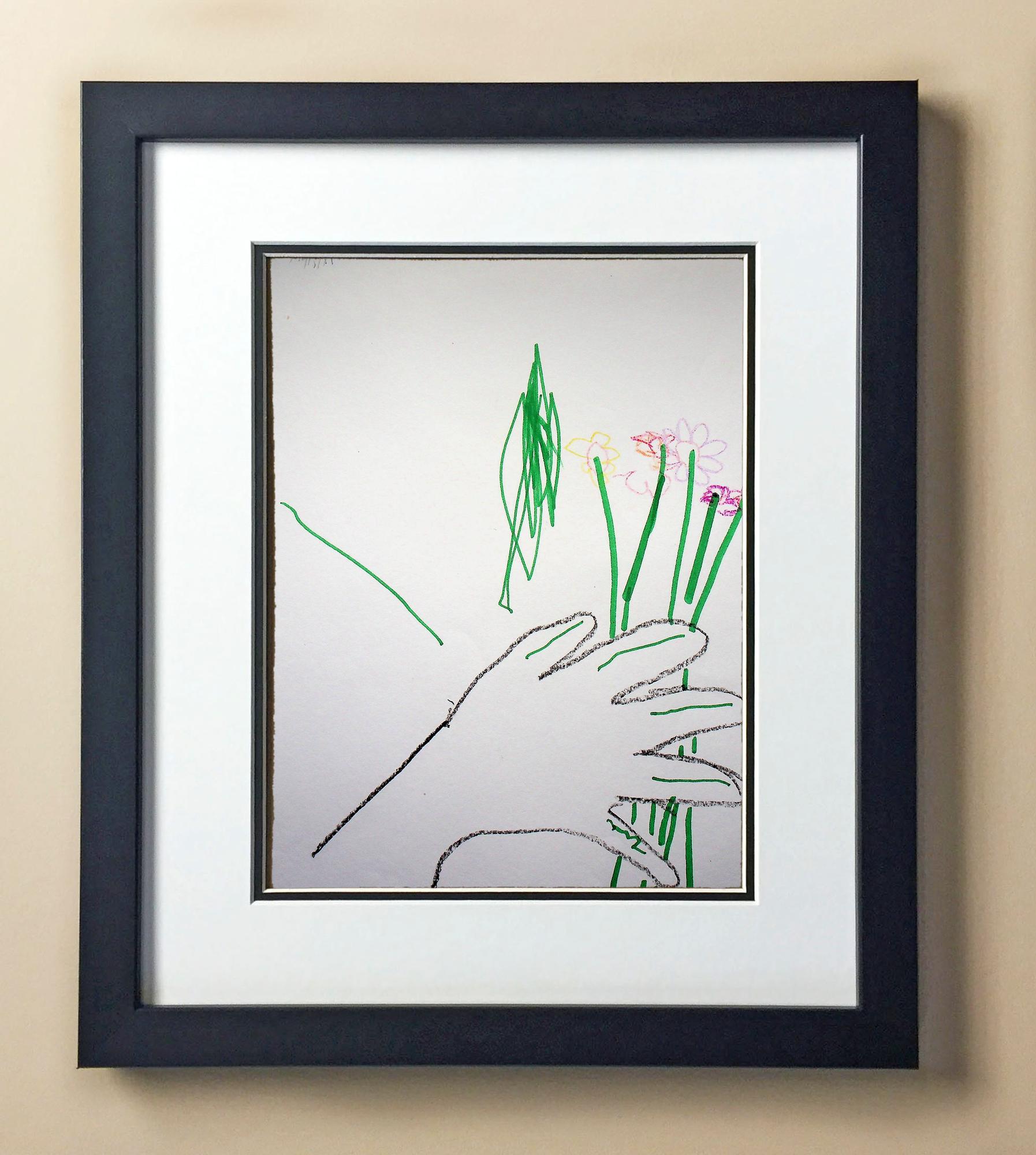 Included with the purchase is the Students Artwork, Frame, double matboard, shatter proof plexiglass, and a ready to hang backerboard with turnbuttons