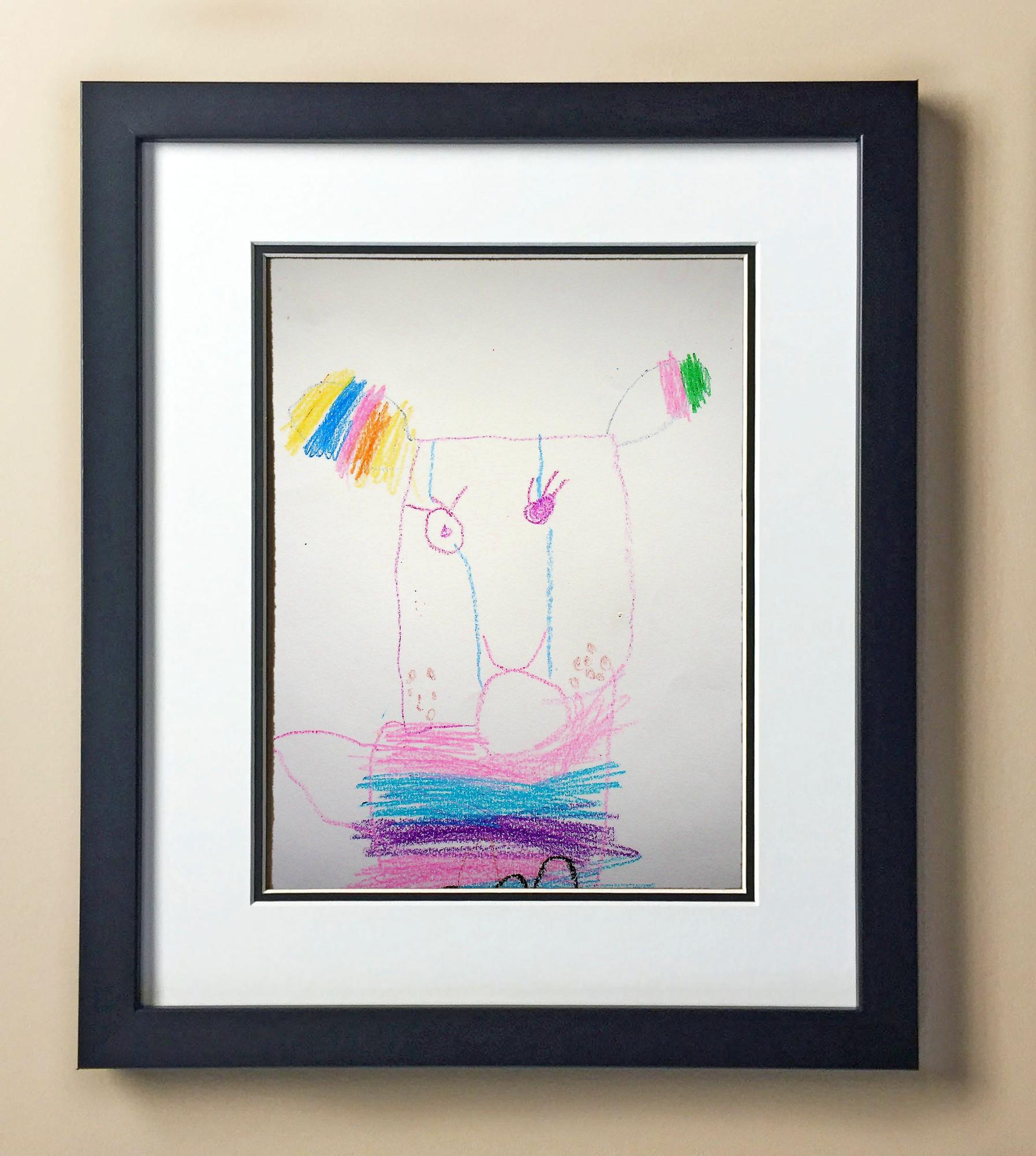 Included with the purchase is the Students Artwork, Frame, double matboard, shatter proof plexiglass, and a ready to hang backerboard with turnbuttons