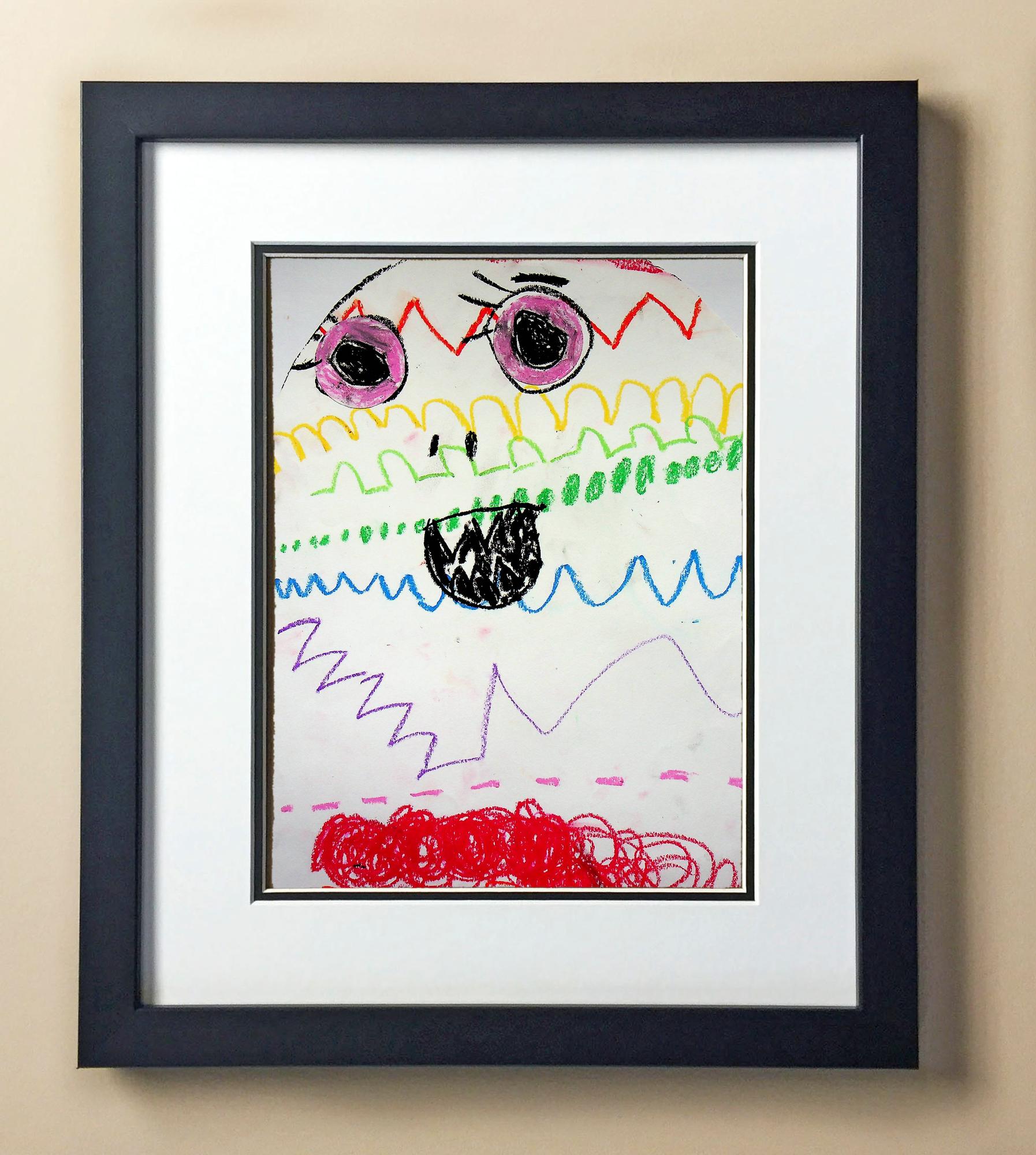 Included with the purchase is the Students Artwork, Frame, double matboard, shatter proof plexiglass, and a ready to hang backerboard with turnbuttons