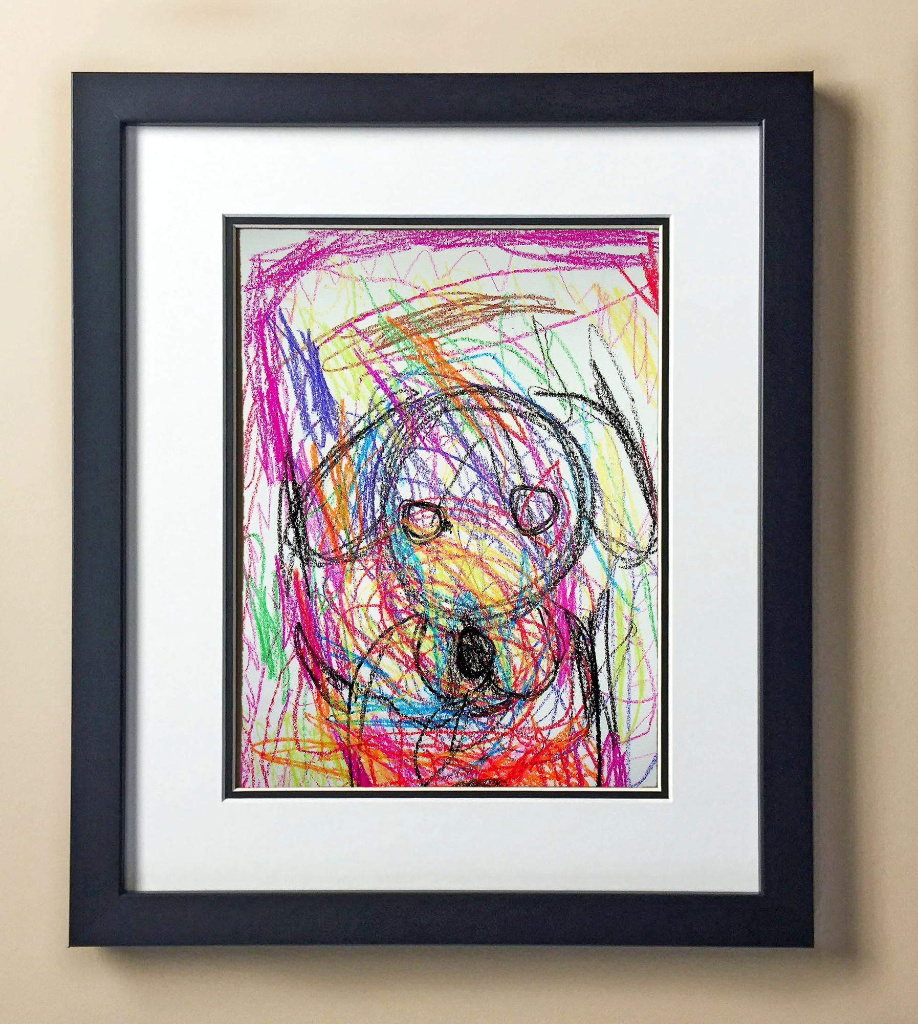 Included with the purchase is the Students Artwork, Frame, double matboard, shatter proof plexiglass, and a ready to hang backerboard with turnbuttons