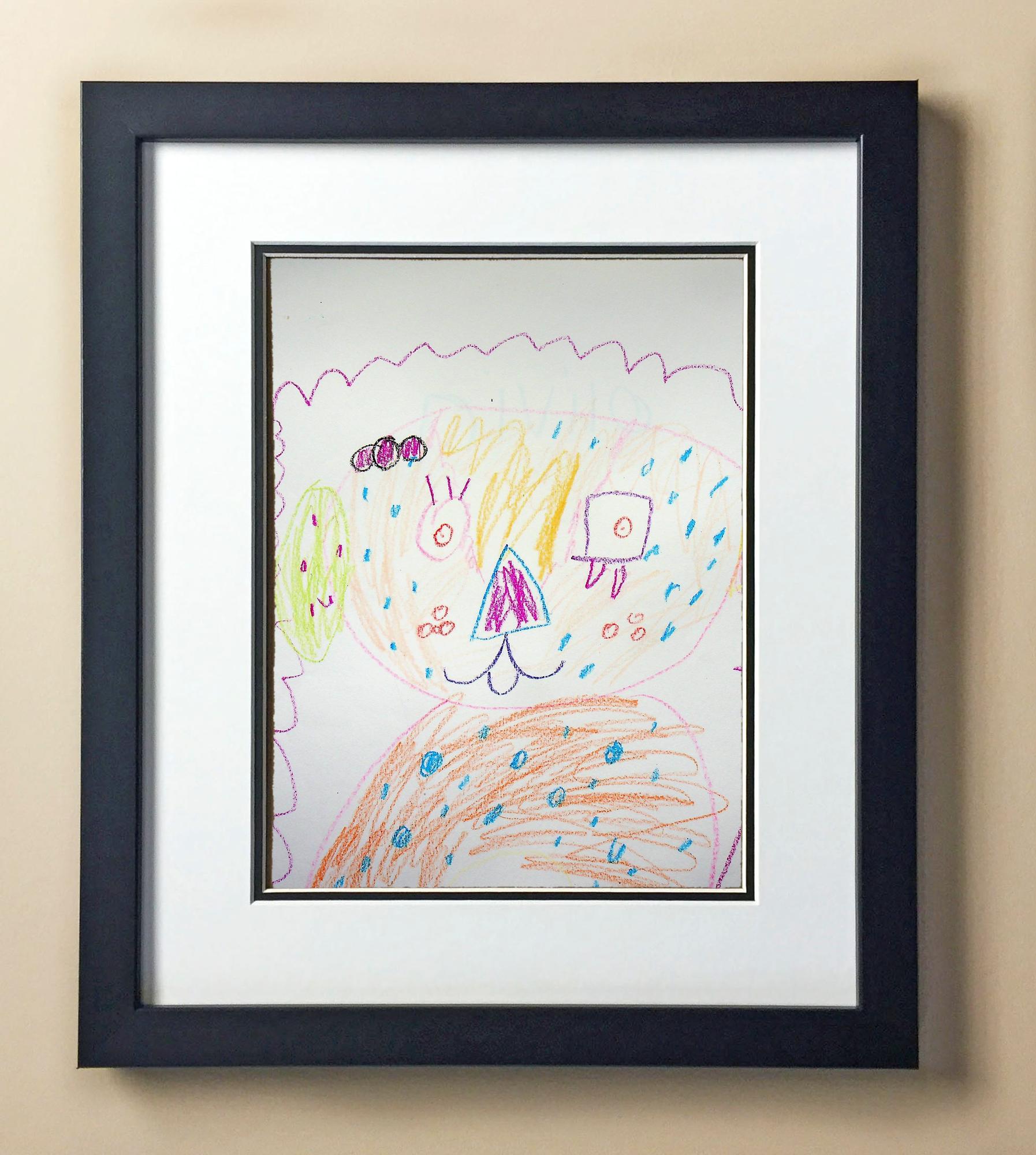 Included with the purchase is the Students Artwork, Frame, double matboard, shatter proof plexiglass, and a ready to hang backerboard with turnbuttons