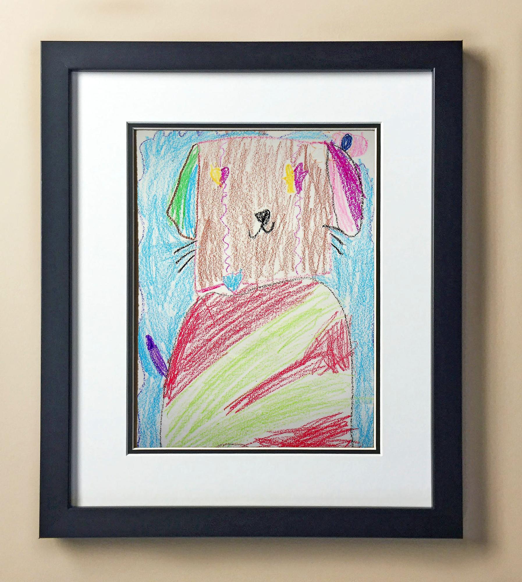 Included with the purchase is the Students Artwork, Frame, double matboard, shatter proof plexiglass, and a ready to hang backerboard with turnbuttons