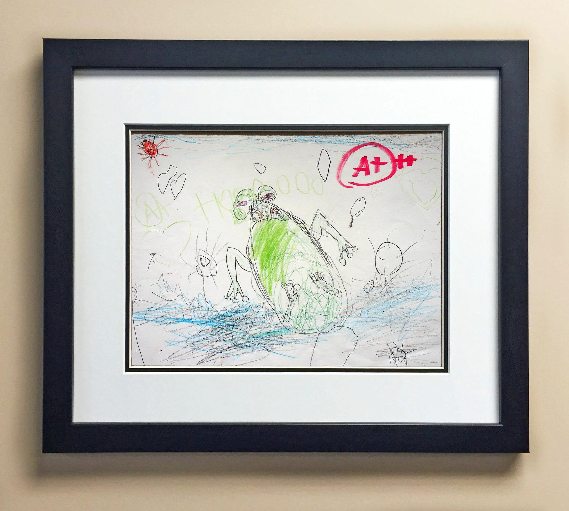 Included with the purchase is the Students Artwork, Frame, double matboard, shatter proof plexiglass, and a ready to hang backerboard with turnbuttons