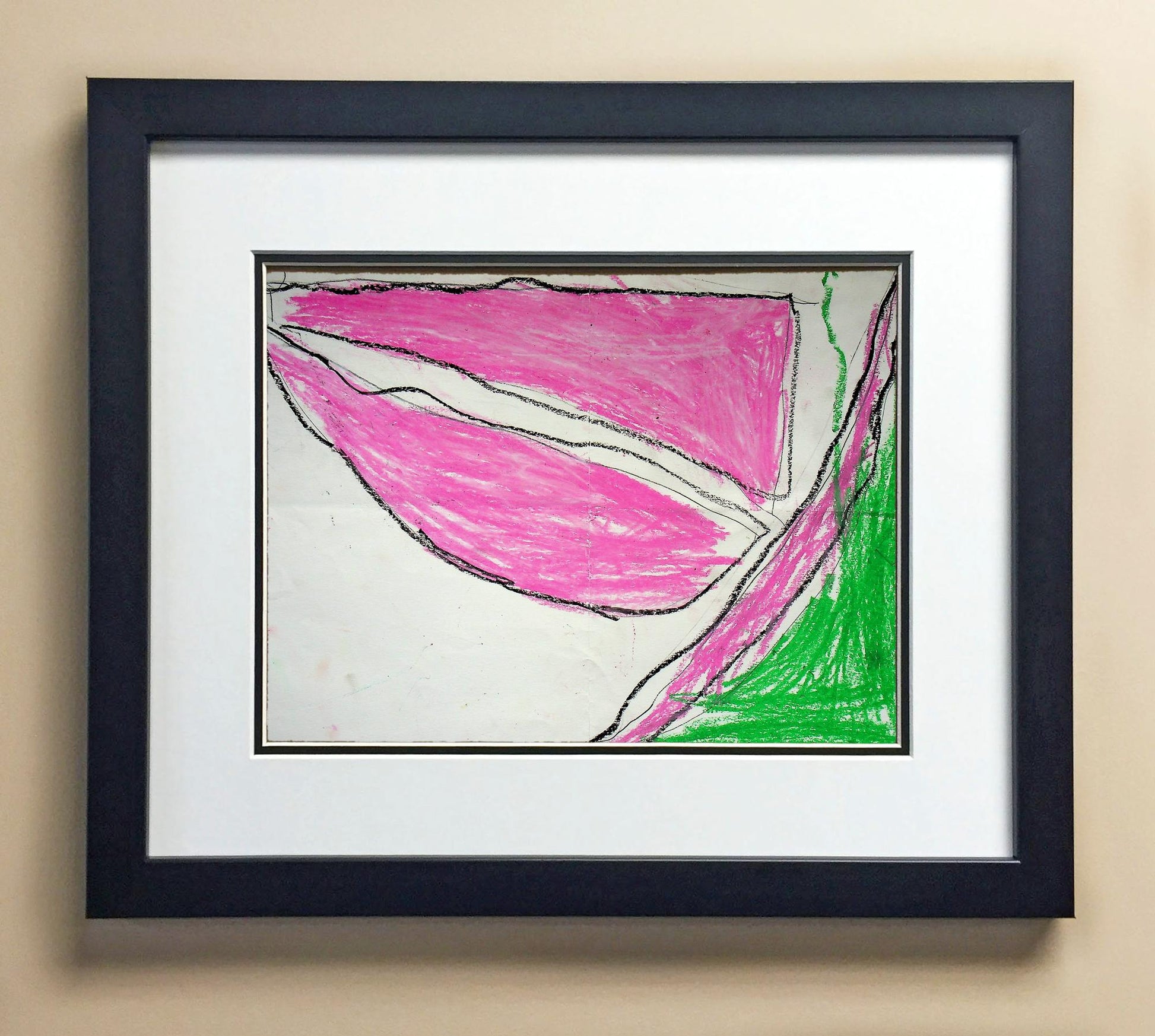 Included with the purchase is the Students Artwork, Frame, double matboard, shatter proof plexiglass, and a ready to hang backerboard with turnbuttons