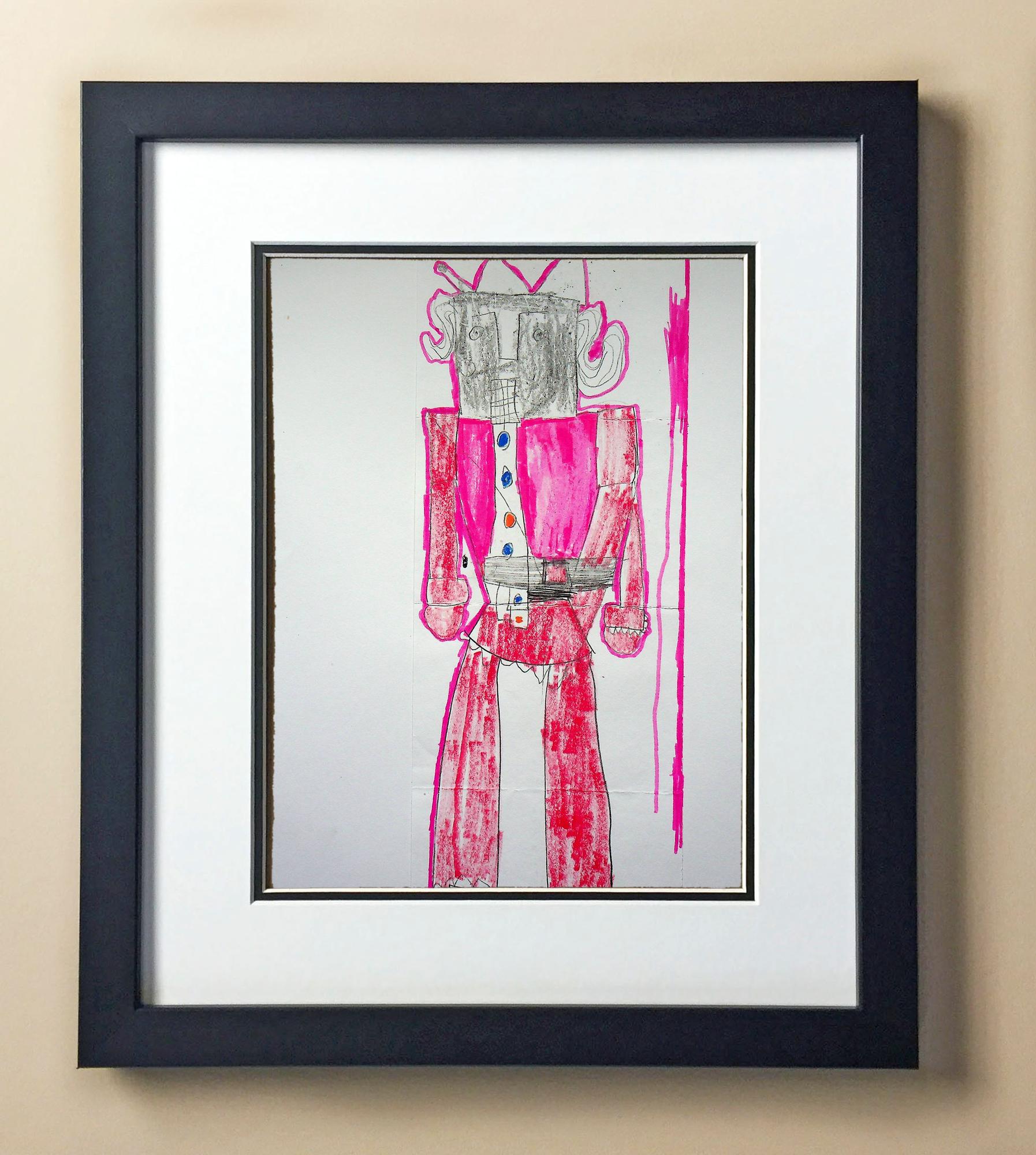 Included with the purchase is the Students Artwork, Frame, double matboard, shatter proof plexiglass, and a ready to hang backerboard with turnbuttons