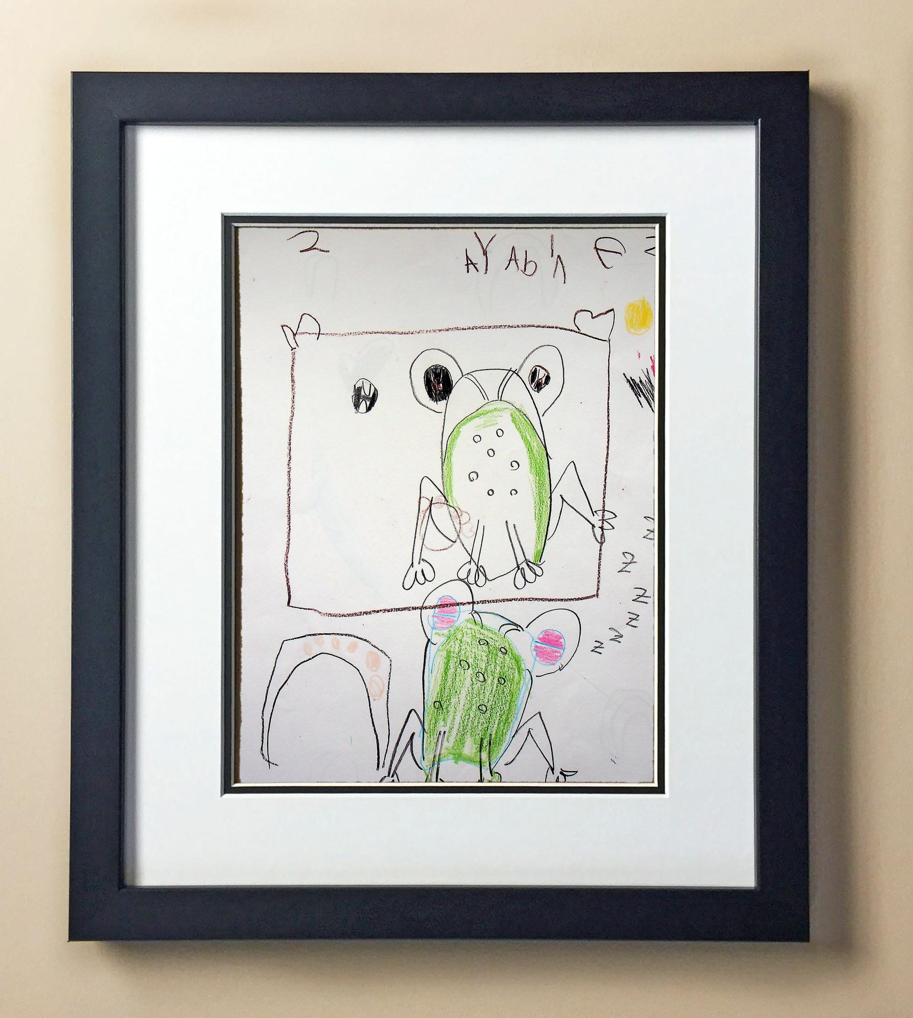 Included with the purchase is the Students Artwork, Frame, double matboard, shatter proof plexiglass, and a ready to hang backerboard with turnbuttons