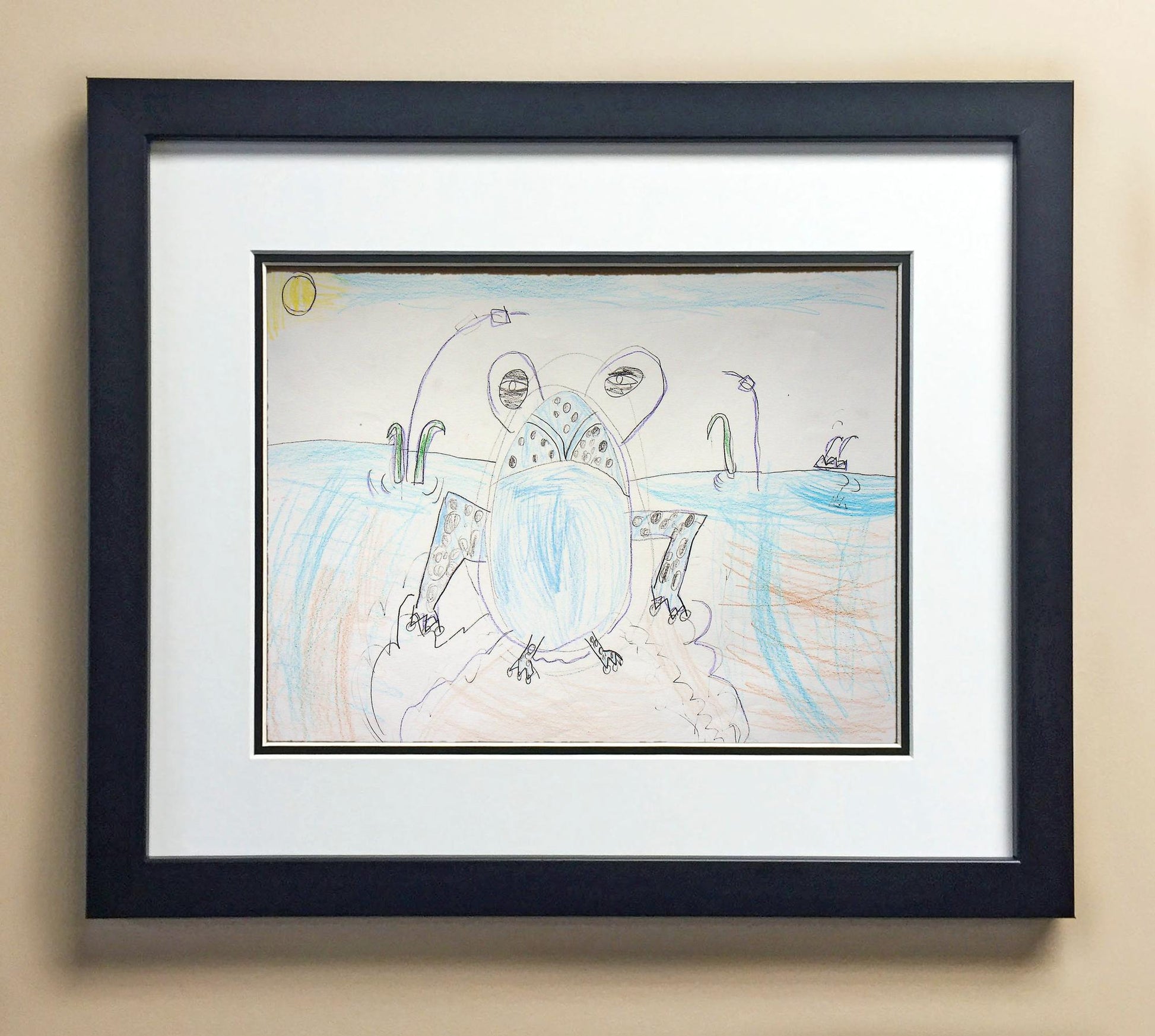 Included with the purchase is the Students Artwork, Frame, double matboard, shatter proof plexiglass, and a ready to hang backerboard with turnbuttons