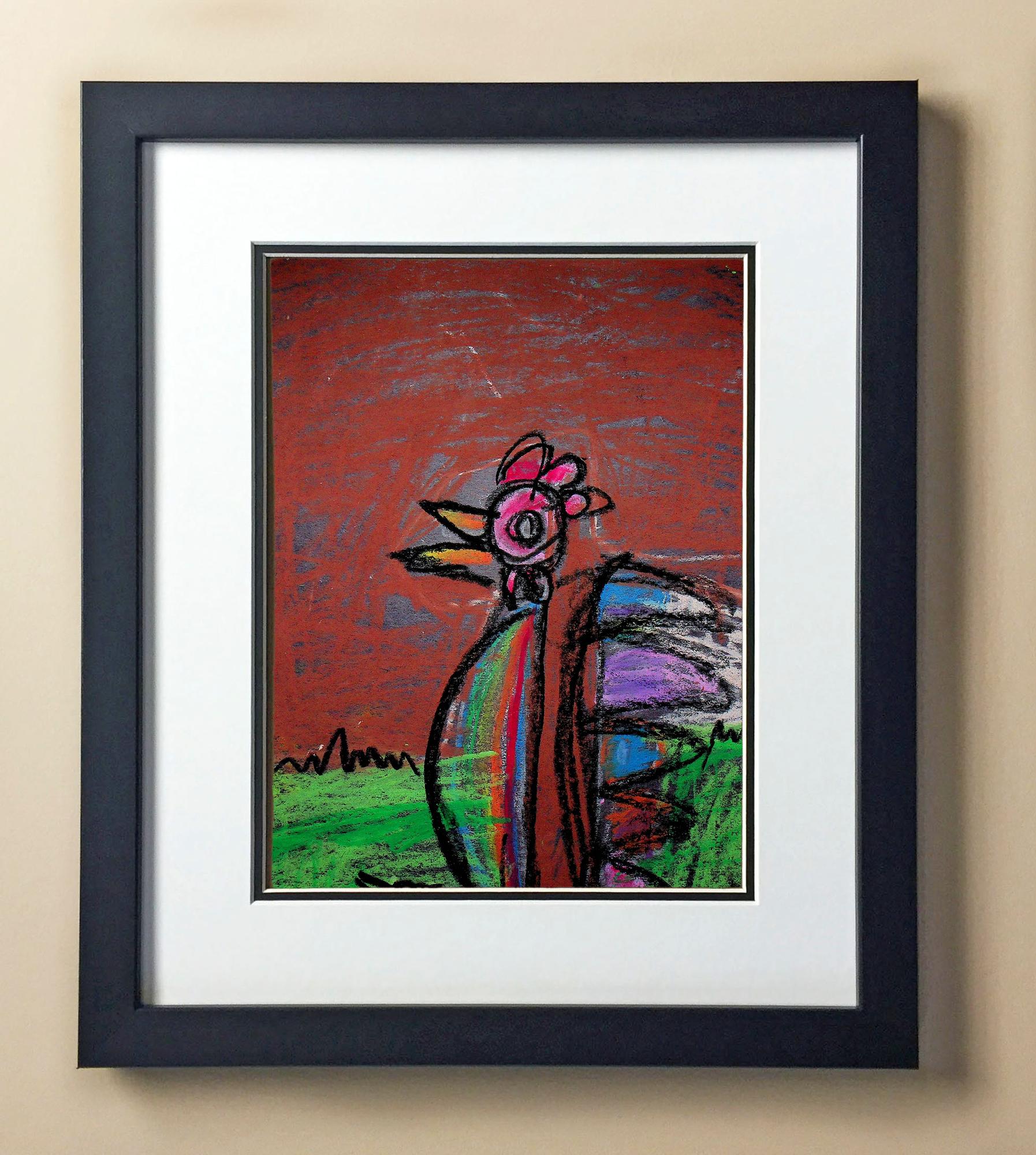 Included with the purchase is the Students Artwork, Frame, double matboard, shatter proof plexiglass, and a ready to hang backerboard with turnbuttons