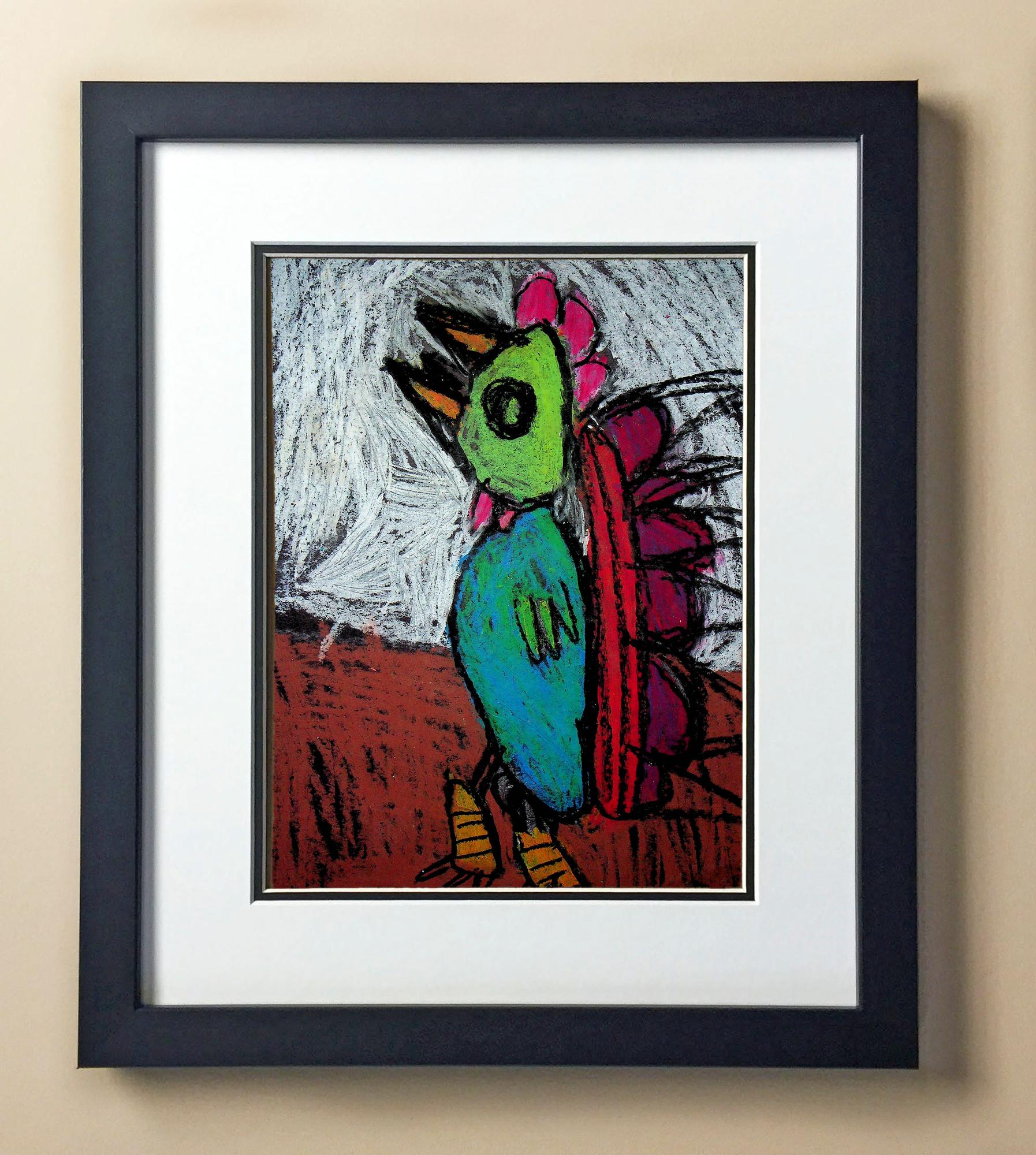 Included with the purchase is the Students Artwork, Frame, double matboard, shatter proof plexiglass, and a ready to hang backerboard with turnbuttons