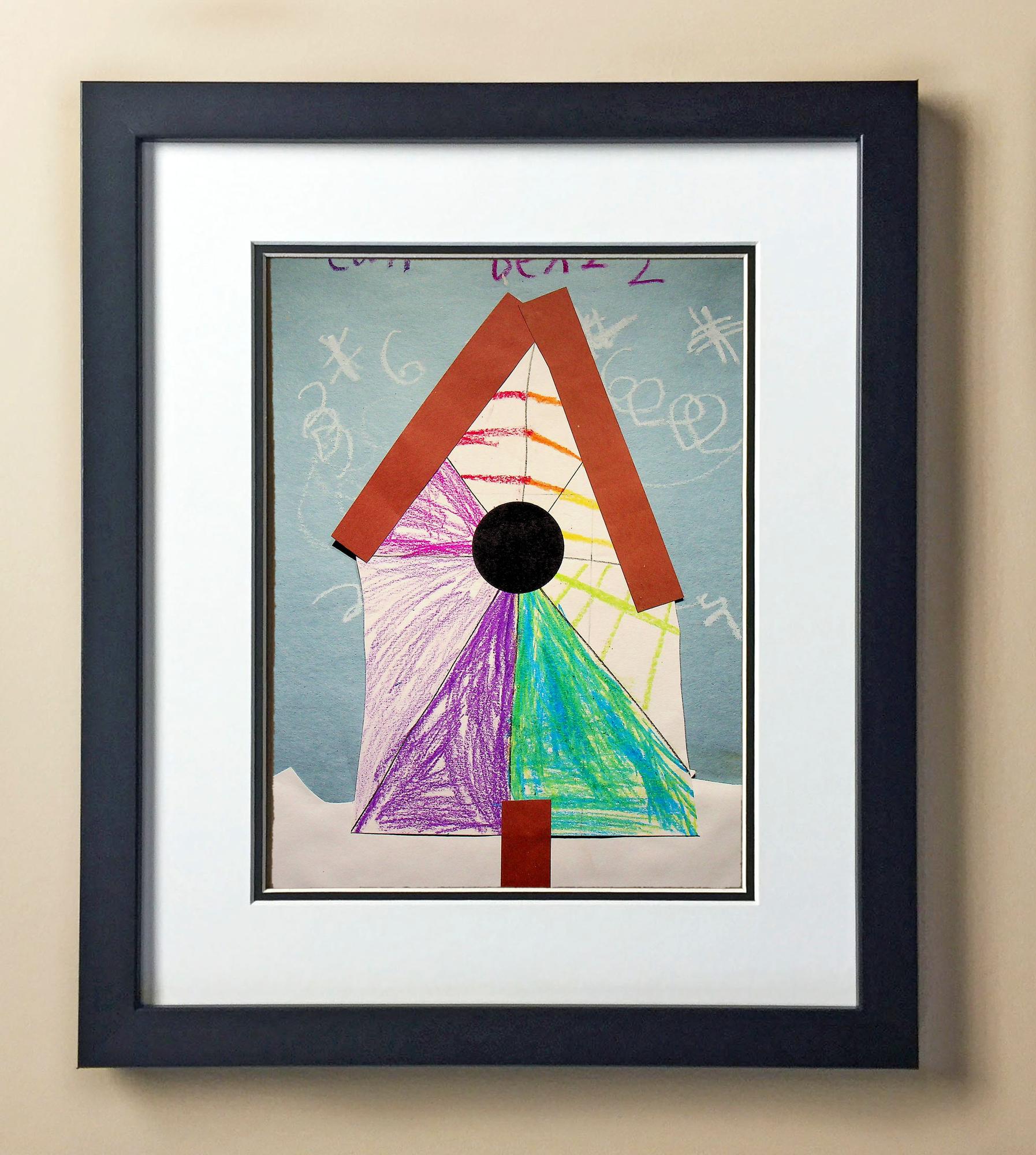 Included with the purchase is the Students Artwork, Frame, double matboard, shatter proof plexiglass, and a ready to hang backerboard with turnbuttons