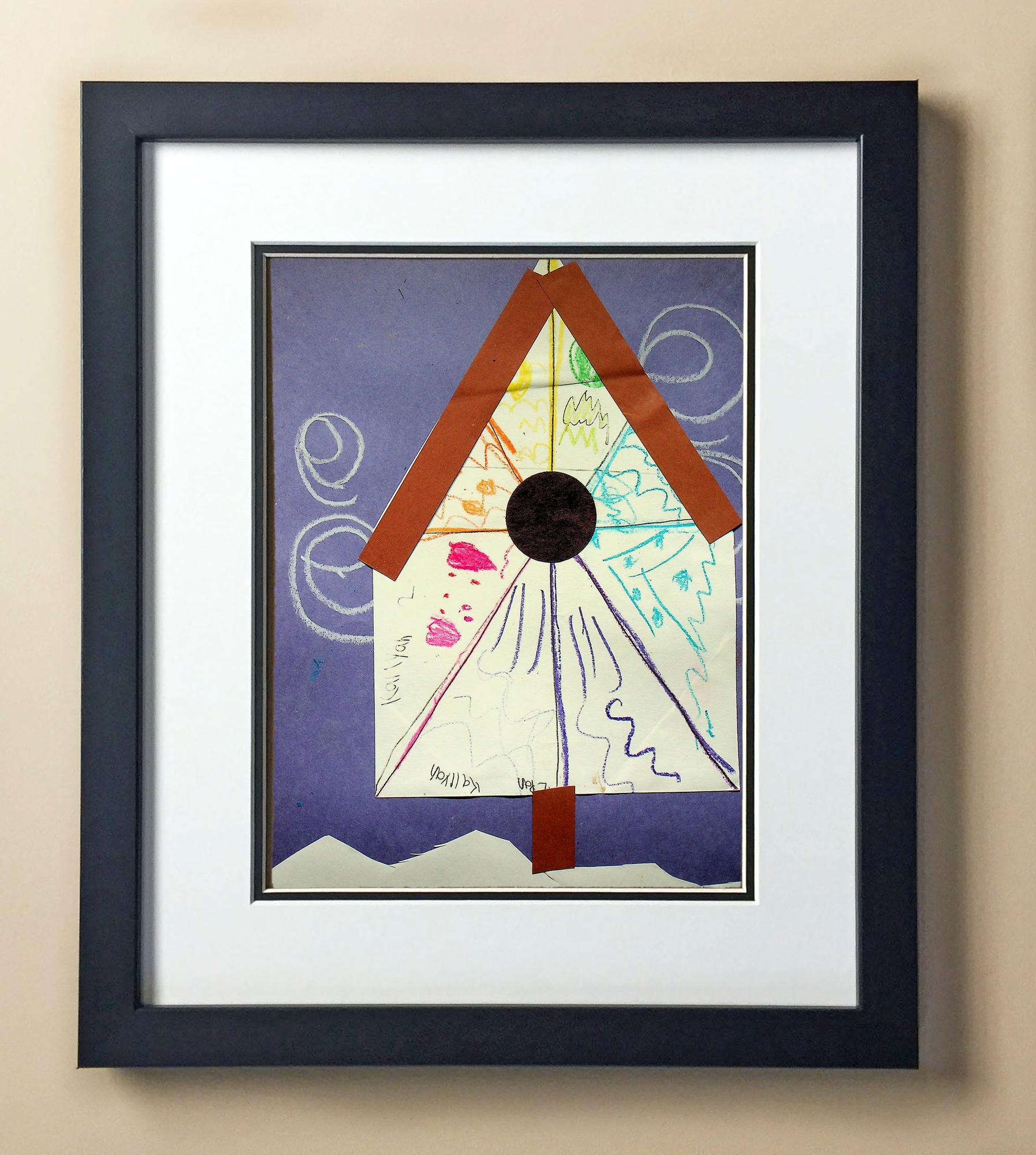 Included with the purchase is the Students Artwork, Frame, double matboard, shatter proof plexiglass, and a ready to hang backerboard with turnbuttons