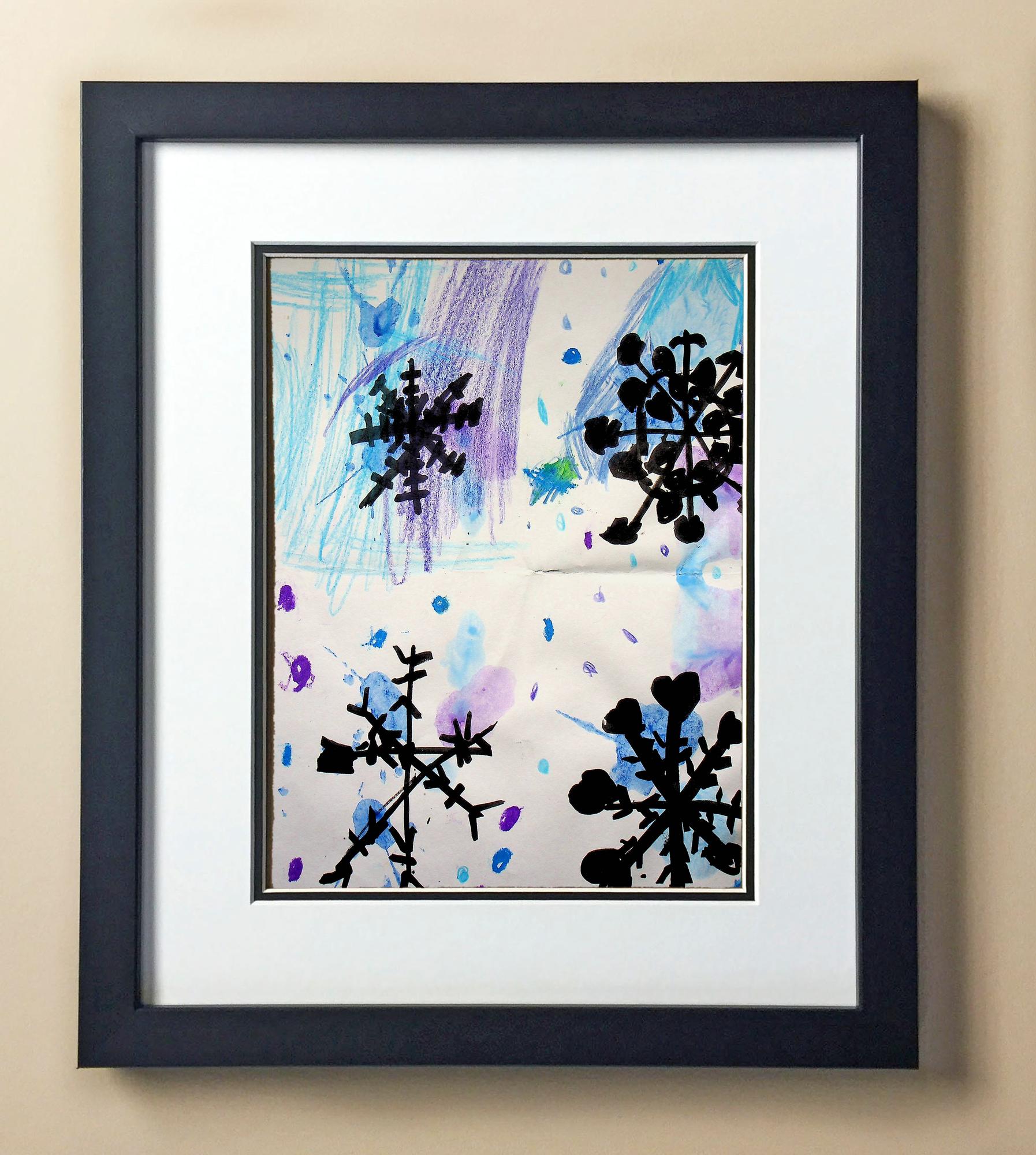 Included with the purchase is the Students Artwork, Frame, double matboard, shatter proof plexiglass, and a ready to hang backerboard with turnbuttons