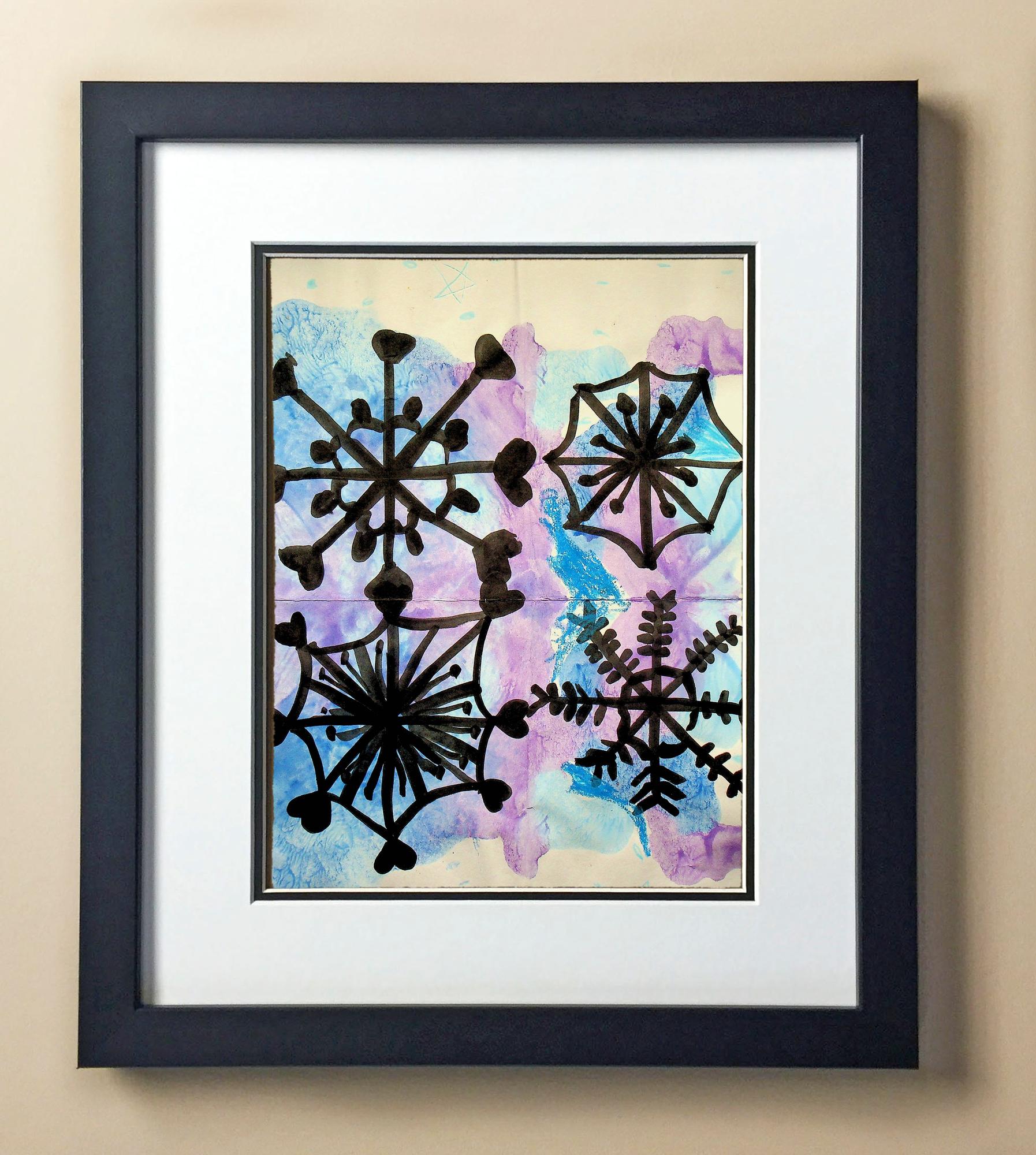 Included with the purchase is the Students Artwork, Frame, double matboard, shatter proof plexiglass, and a ready to hang backerboard with turnbuttons
