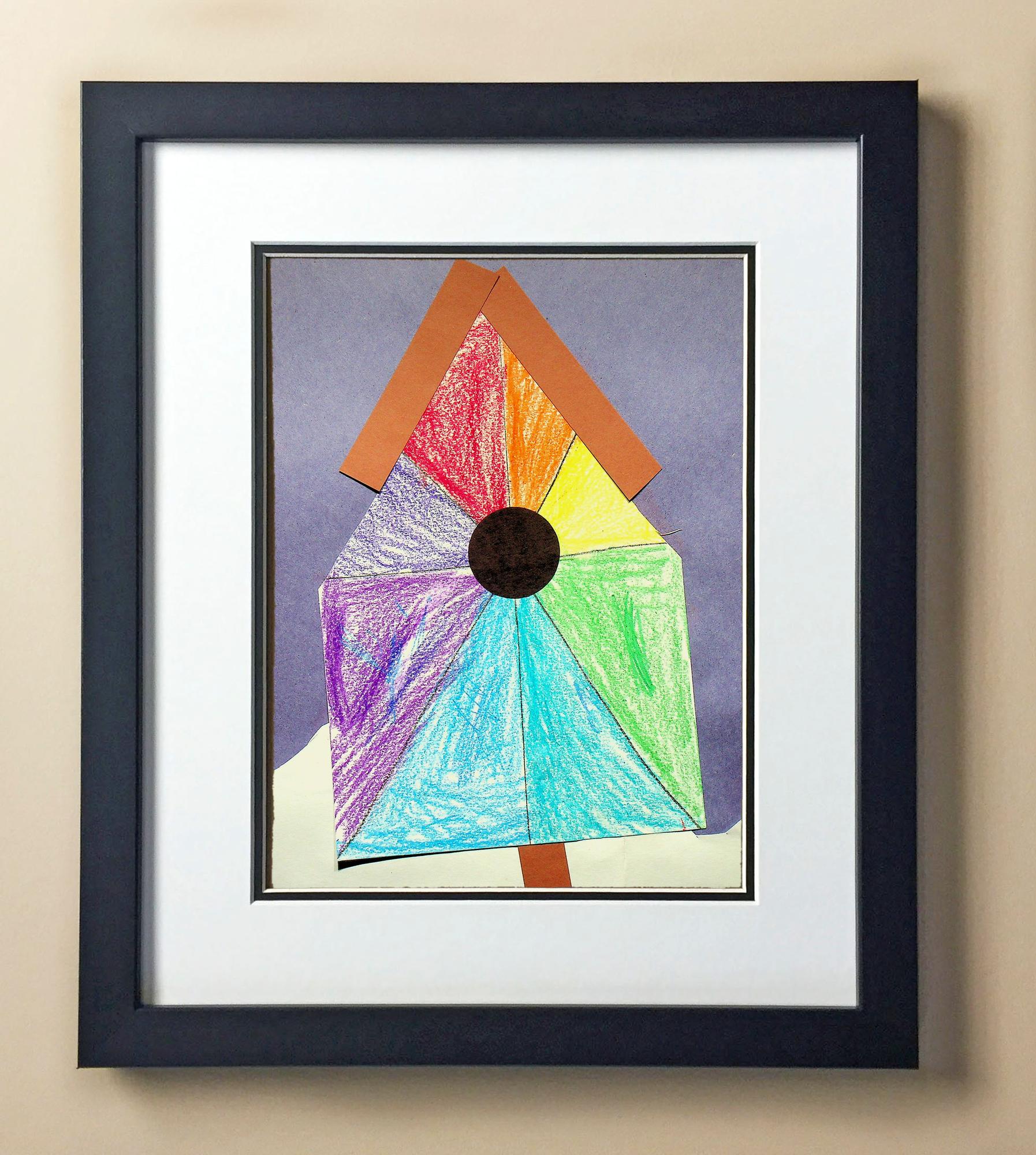 Included with the purchase is the Students Artwork, Frame, double matboard, shatter proof plexiglass, and a ready to hang backerboard with turnbuttons