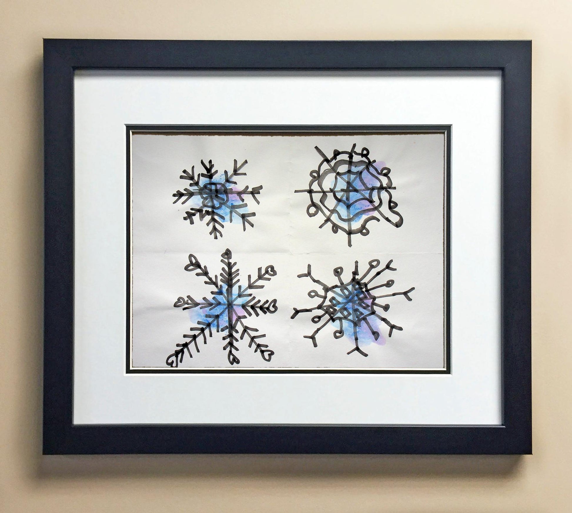 Included with the purchase is the Students Artwork, Frame, double matboard, shatter proof plexiglass, and a ready to hang backerboard with turnbuttons