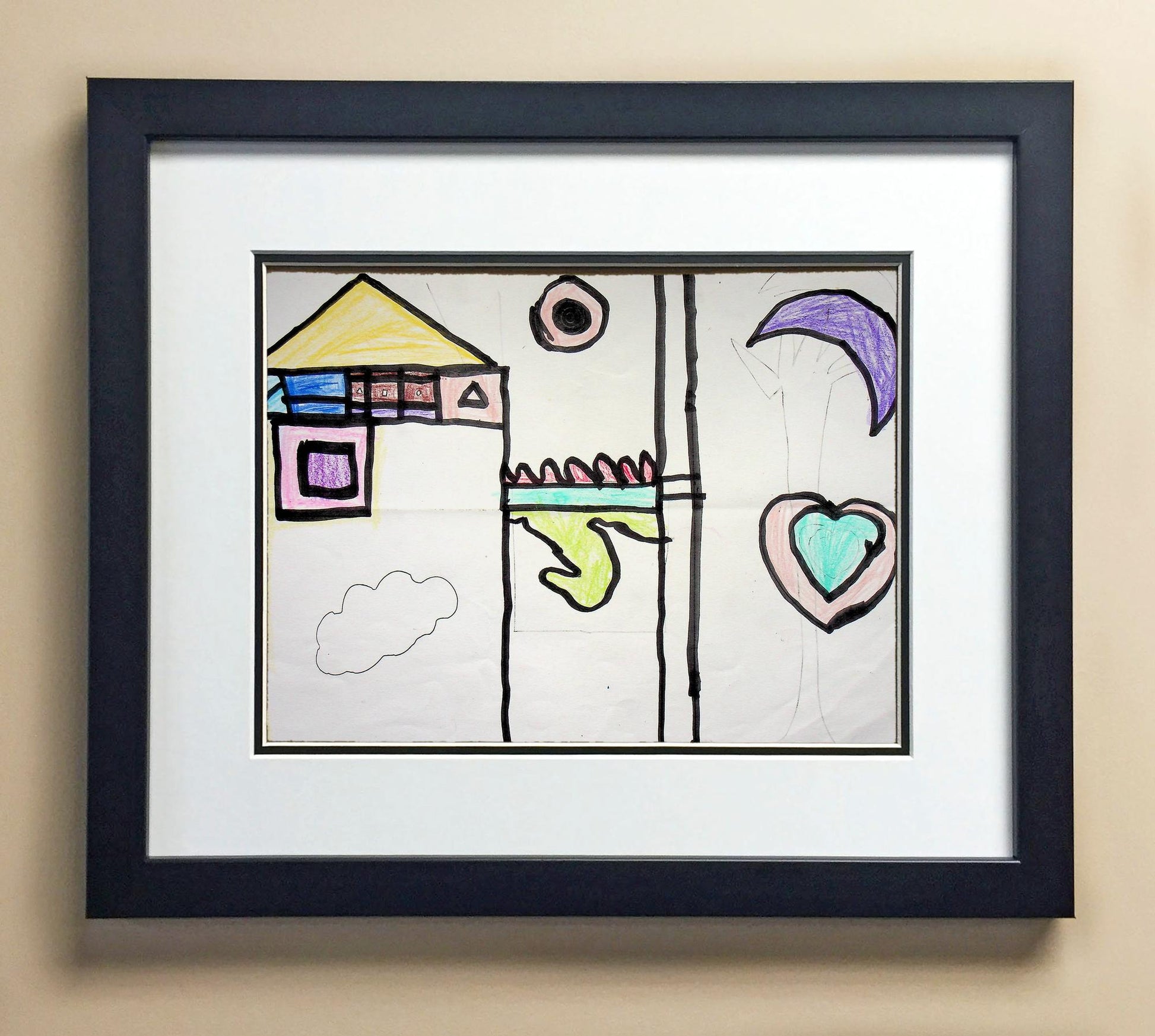 Included with the purchase is the Students Artwork, Frame, double matboard, shatter proof plexiglass, and a ready to hang backerboard with turnbuttons