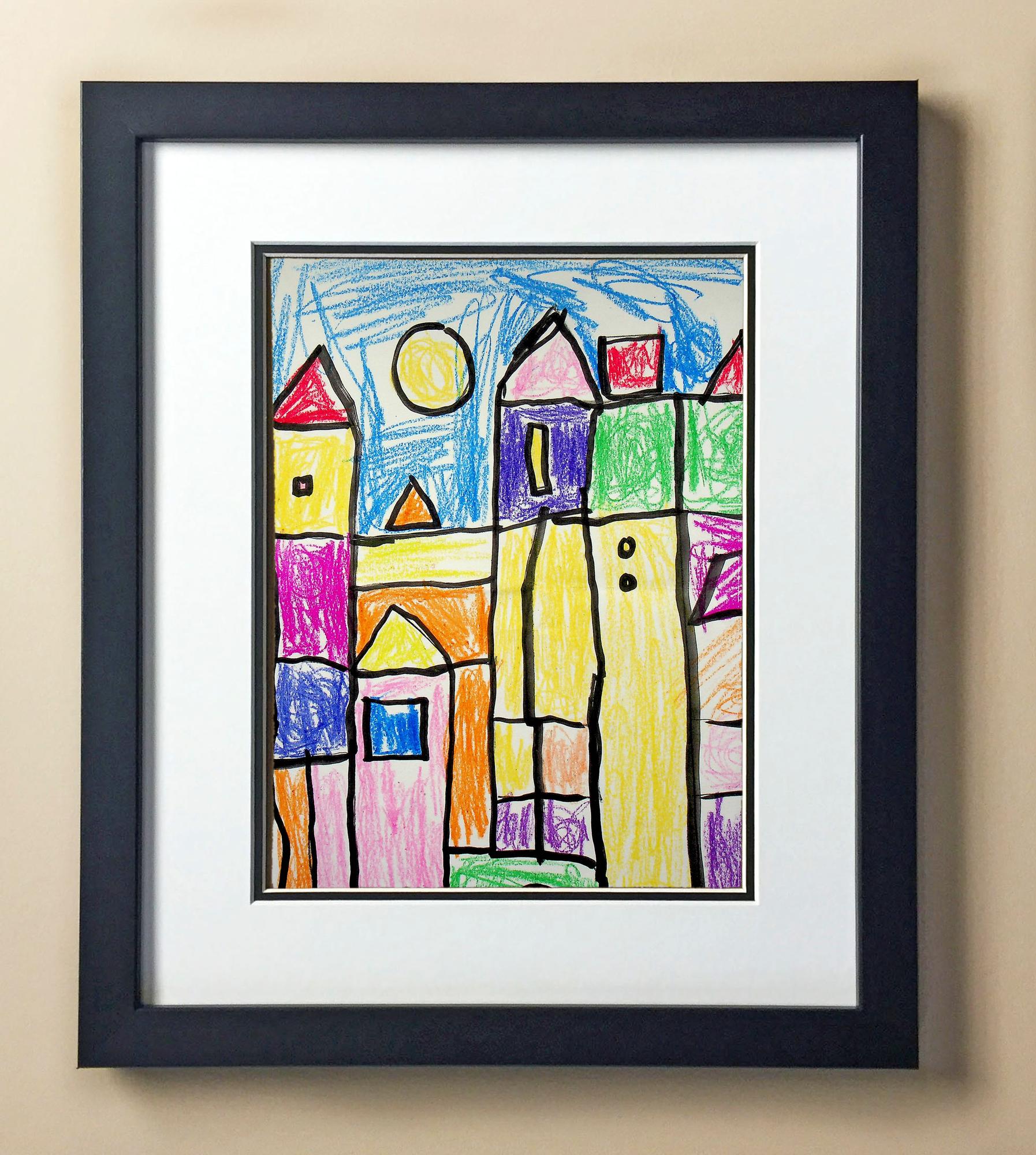 Included with the purchase is the Students Artwork, Frame, double matboard, shatter proof plexiglass, and a ready to hang backerboard with turnbuttons