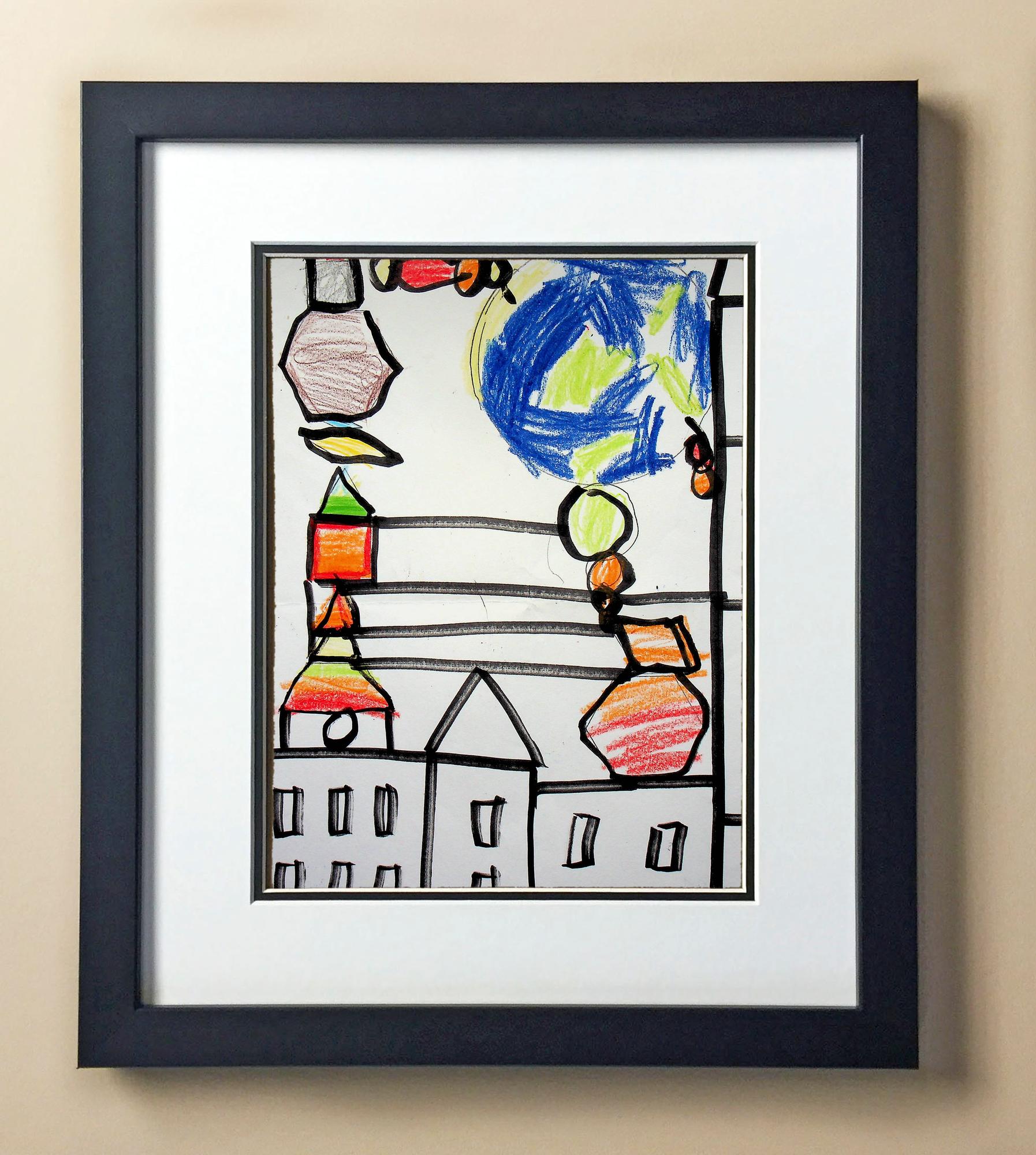 Included with the purchase is the Students Artwork, Frame, double matboard, shatter proof plexiglass, and a ready to hang backerboard with turnbuttons