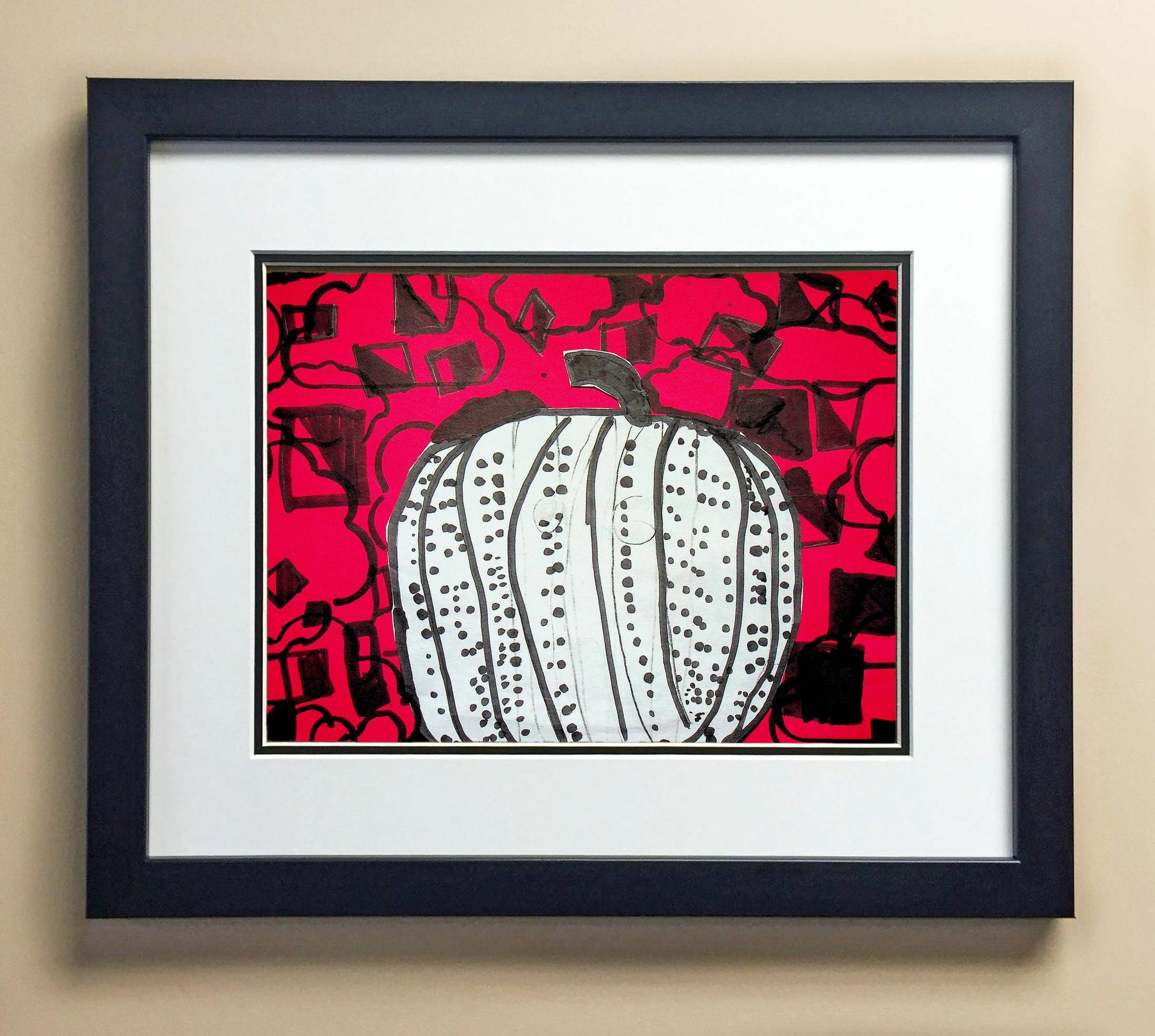 Included with the purchase is the Students Artwork, Frame, double matboard, shatter proof plexiglass, and a ready to hang backerboard with turnbuttons