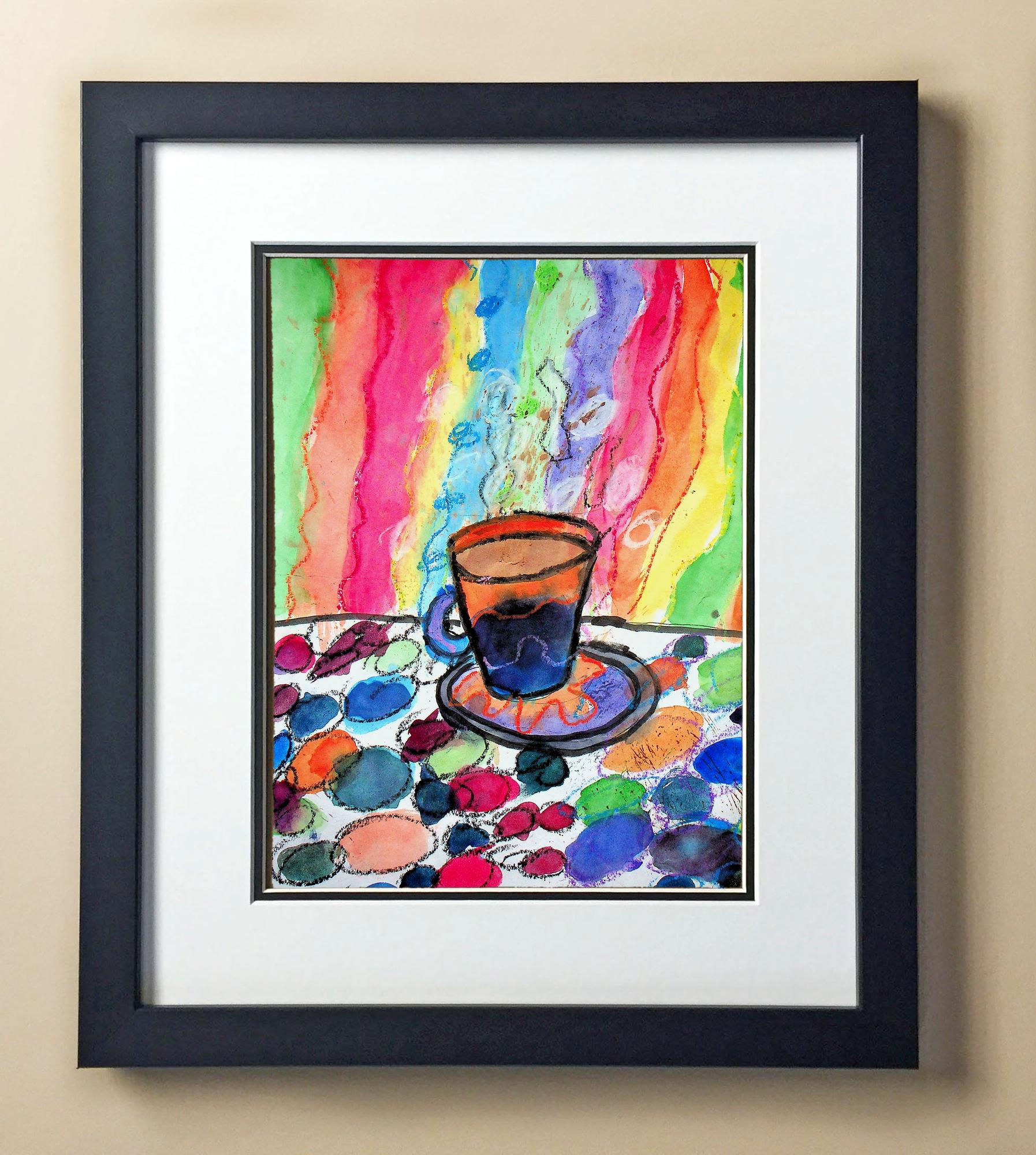 Included with the purchase is the Students Artwork, Frame, double matboard, shatter proof plexiglass, and a ready to hang backerboard with turnbuttons