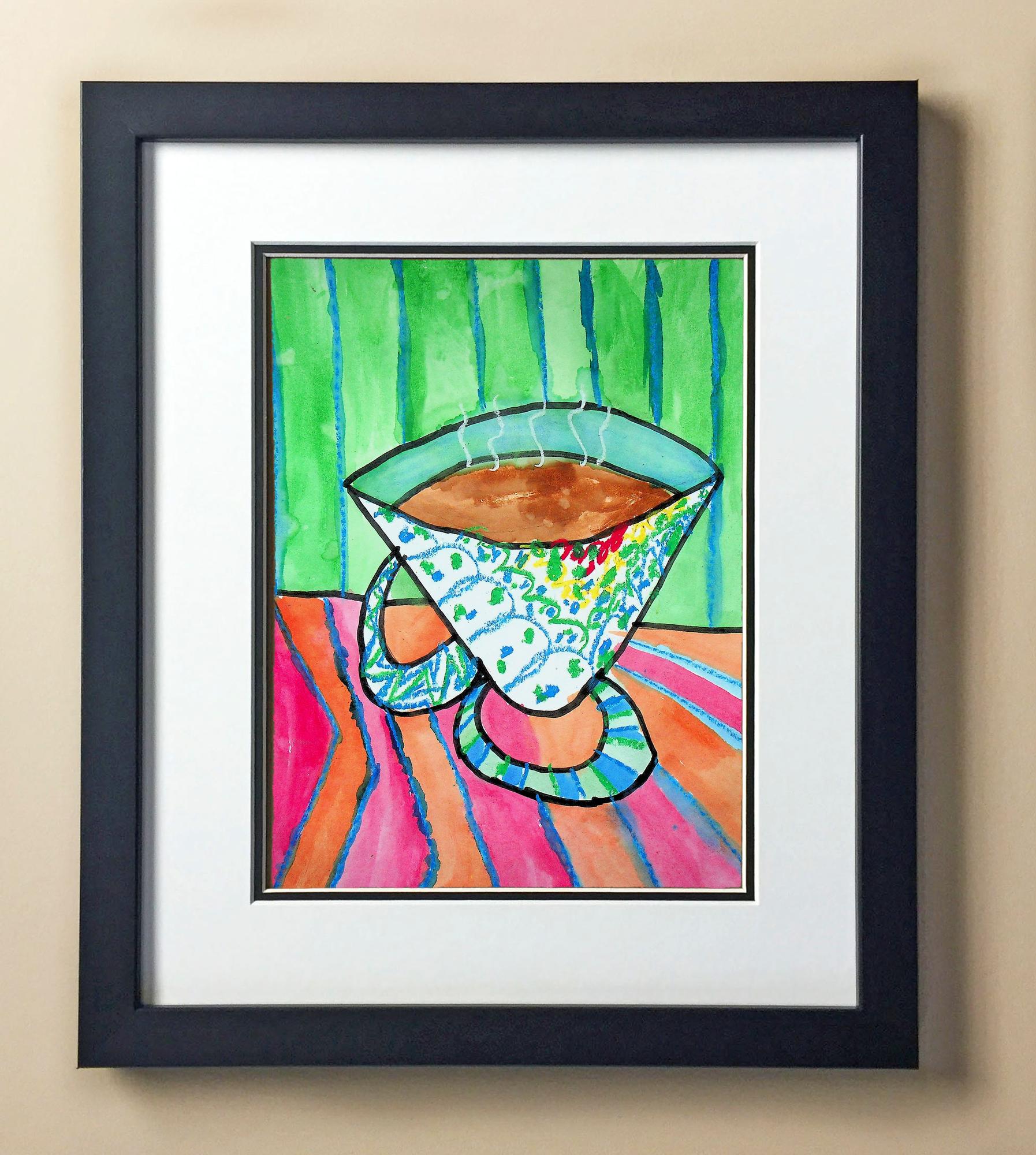 Included with the purchase is the Students Artwork, Frame, double matboard, shatter proof plexiglass, and a ready to hang backerboard with turnbuttons
