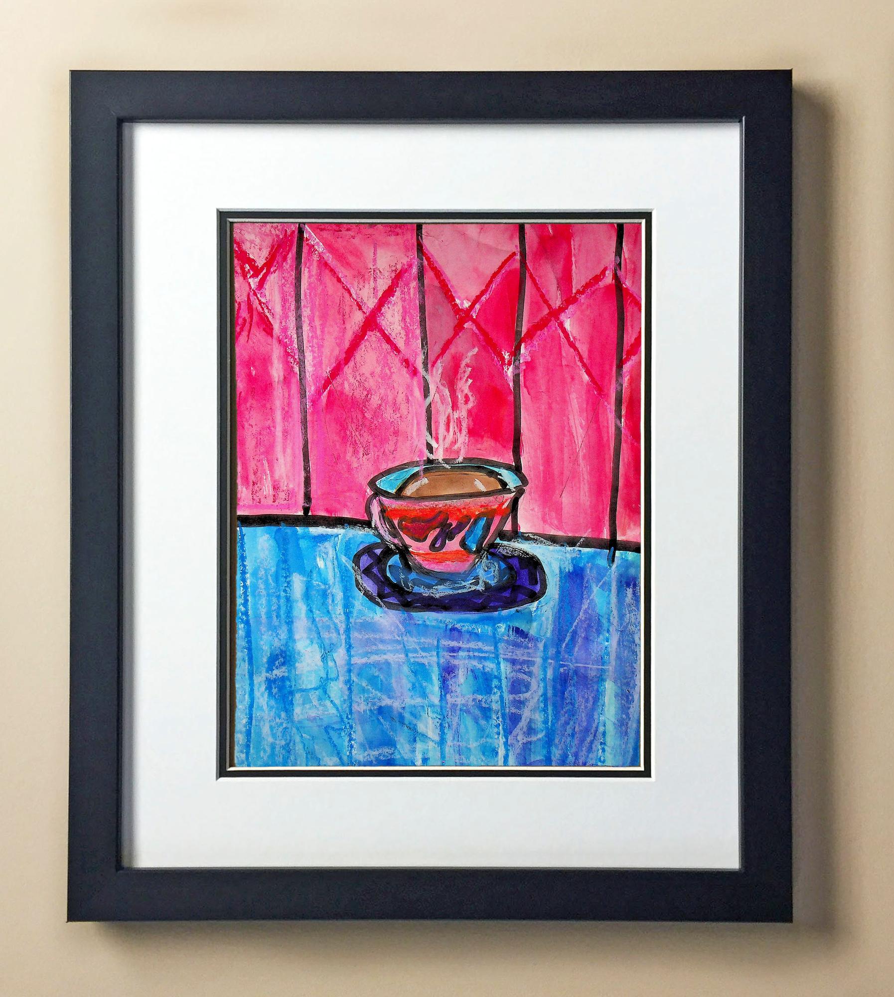 Included with the purchase is the Students Artwork, Frame, double matboard, shatter proof plexiglass, and a ready to hang backerboard with turnbuttons