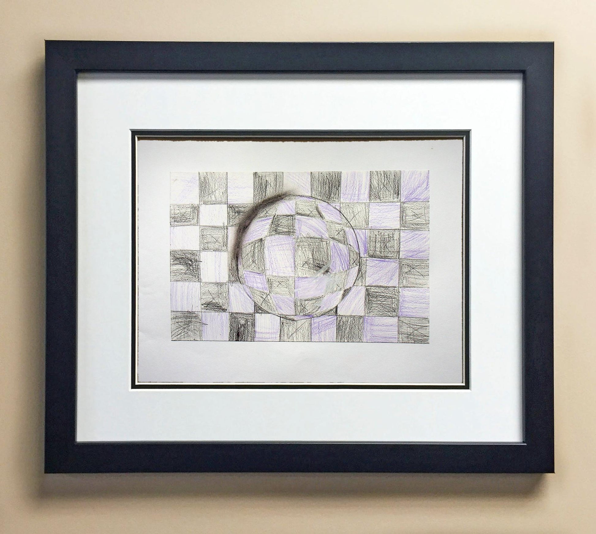 Included with the purchase is the Students Artwork, Frame, double matboard, shatter proof plexiglass, and a ready to hang backerboard with turnbuttons