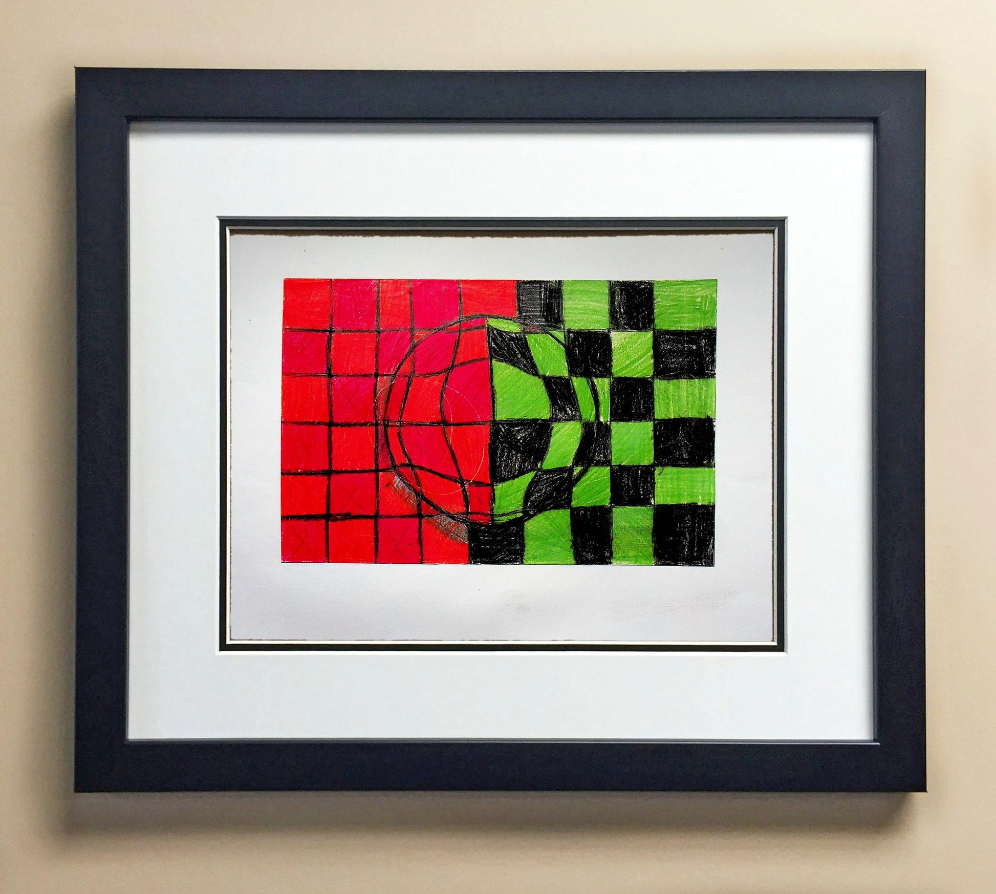 Included with the purchase is the Students Artwork, Frame, double matboard, shatter proof plexiglass, and a ready to hang backerboard with turnbuttons