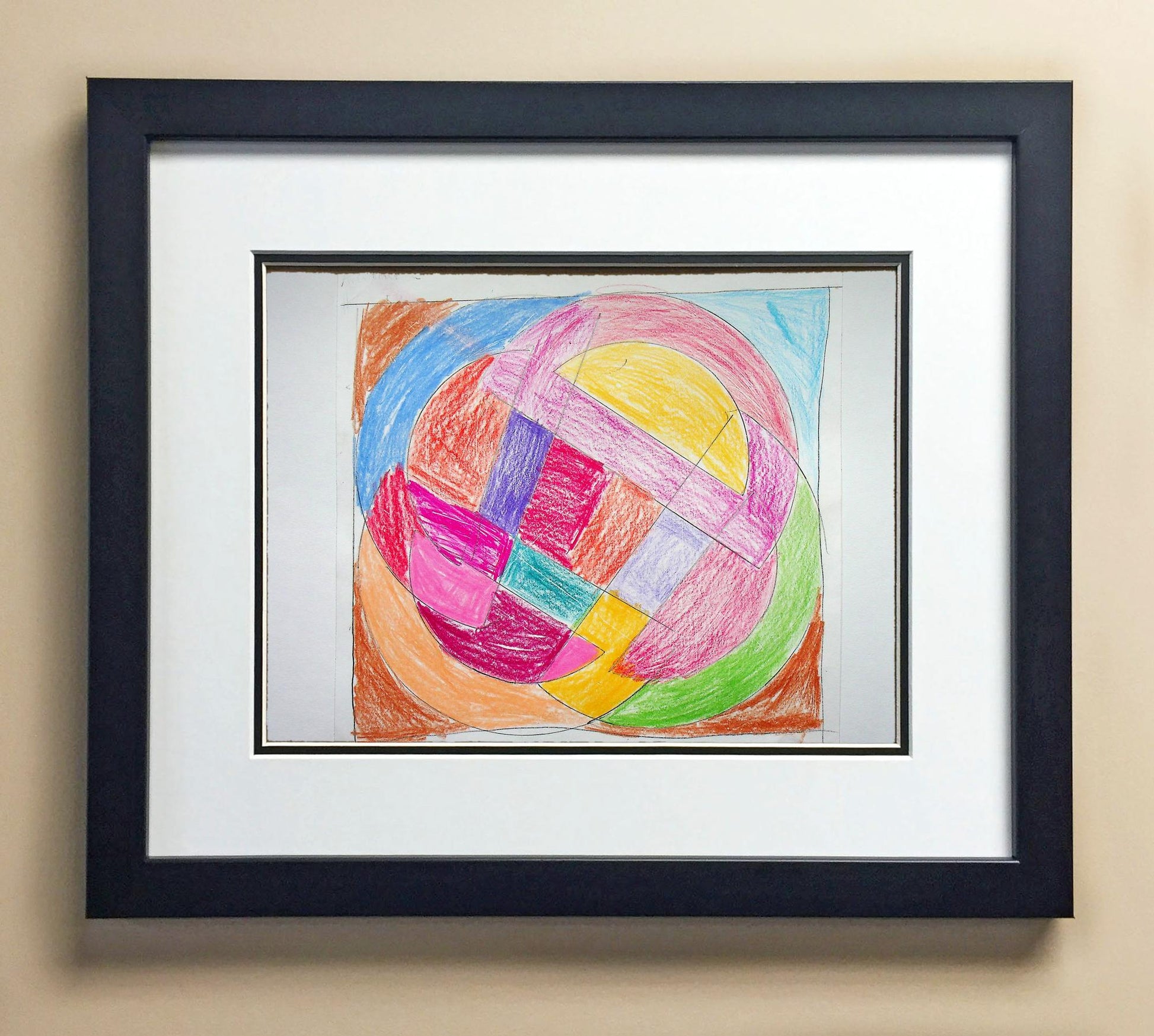 Included with the purchase is the Students Artwork, Frame, double matboard, shatter proof plexiglass, and a ready to hang backerboard with turnbuttons