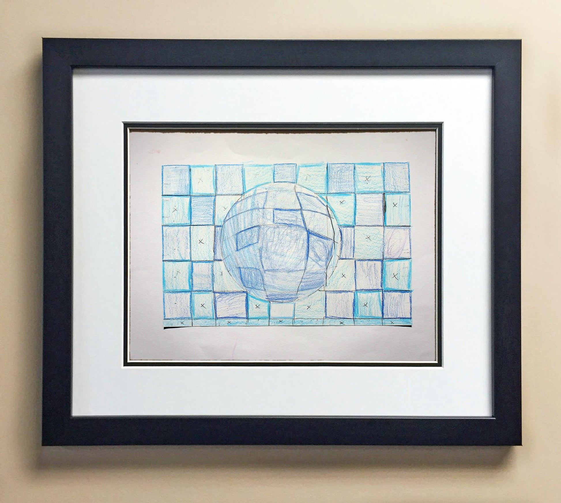 Included with the purchase is the Students Artwork, Frame, double matboard, shatter proof plexiglass, and a ready to hang backerboard with turnbuttons