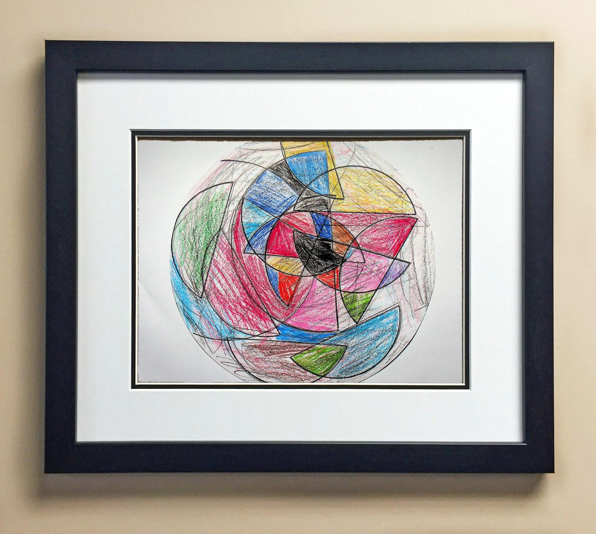 Included with the purchase is the Students Artwork, Frame, double matboard, shatter proof plexiglass, and a ready to hang backerboard with turnbuttons