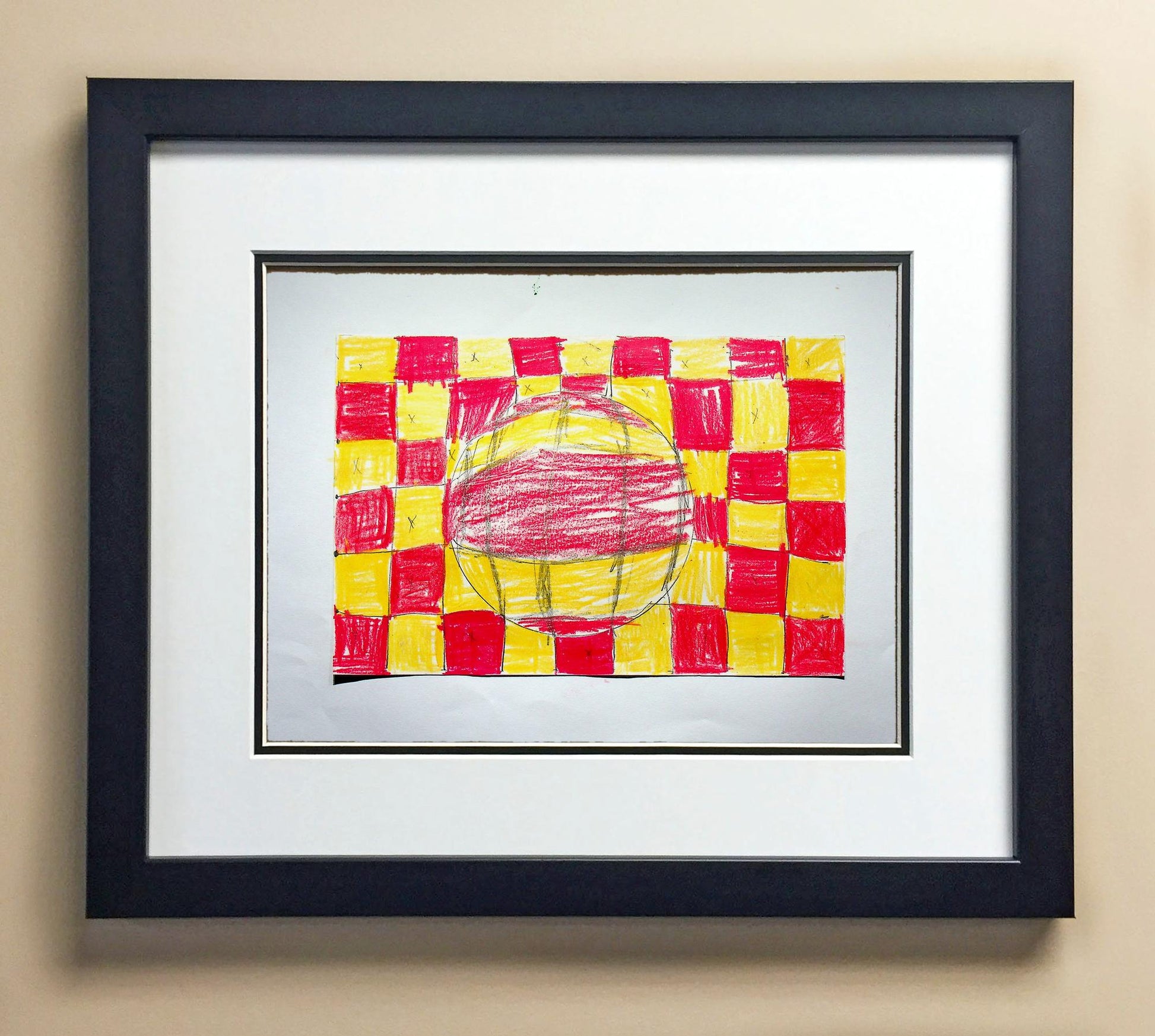 Included with the purchase is the Students Artwork, Frame, double matboard, shatter proof plexiglass, and a ready to hang backerboard with turnbuttons