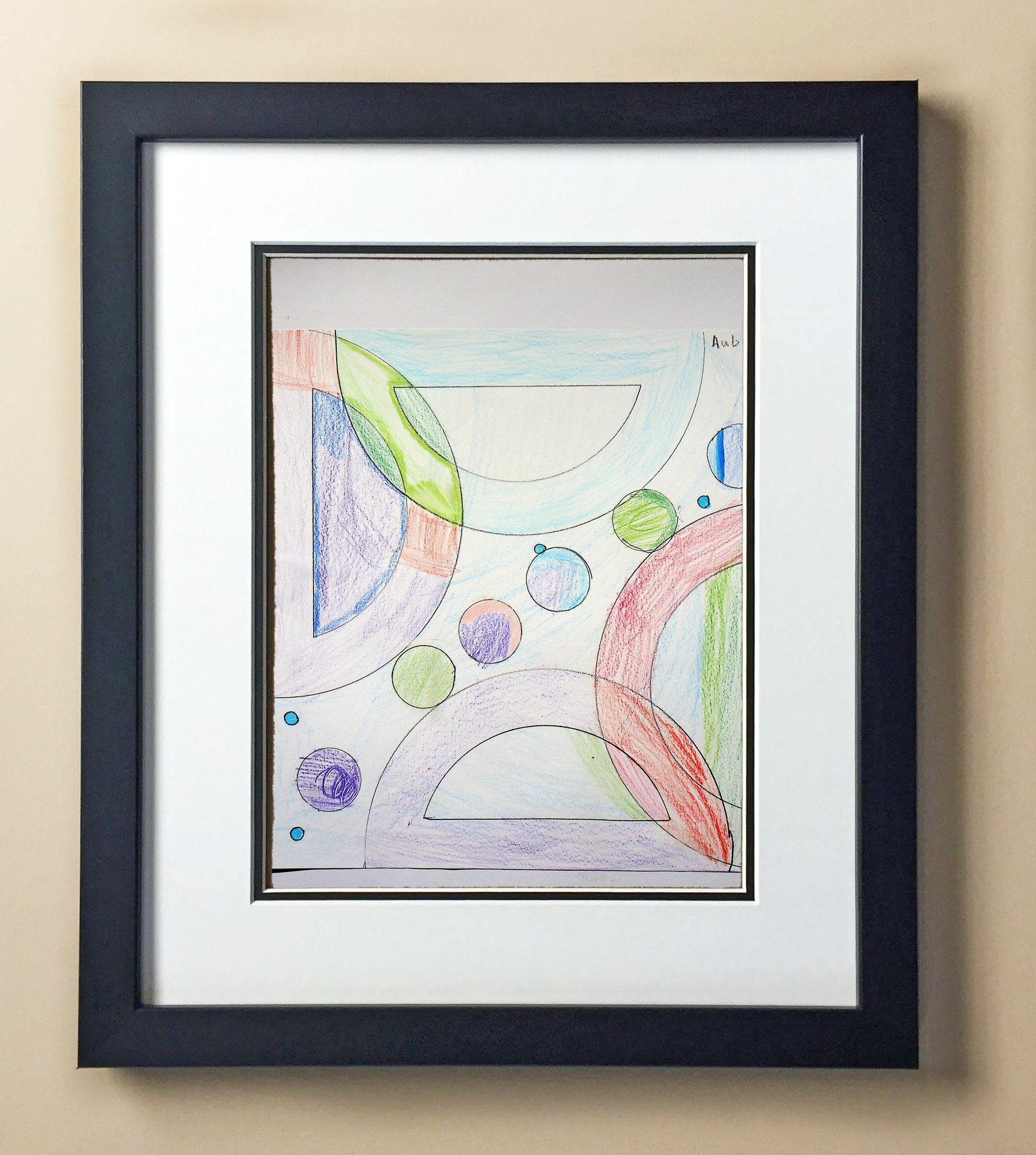 Included with the purchase is the Students Artwork, Frame, double matboard, shatter proof plexiglass, and a ready to hang backerboard with turnbuttons