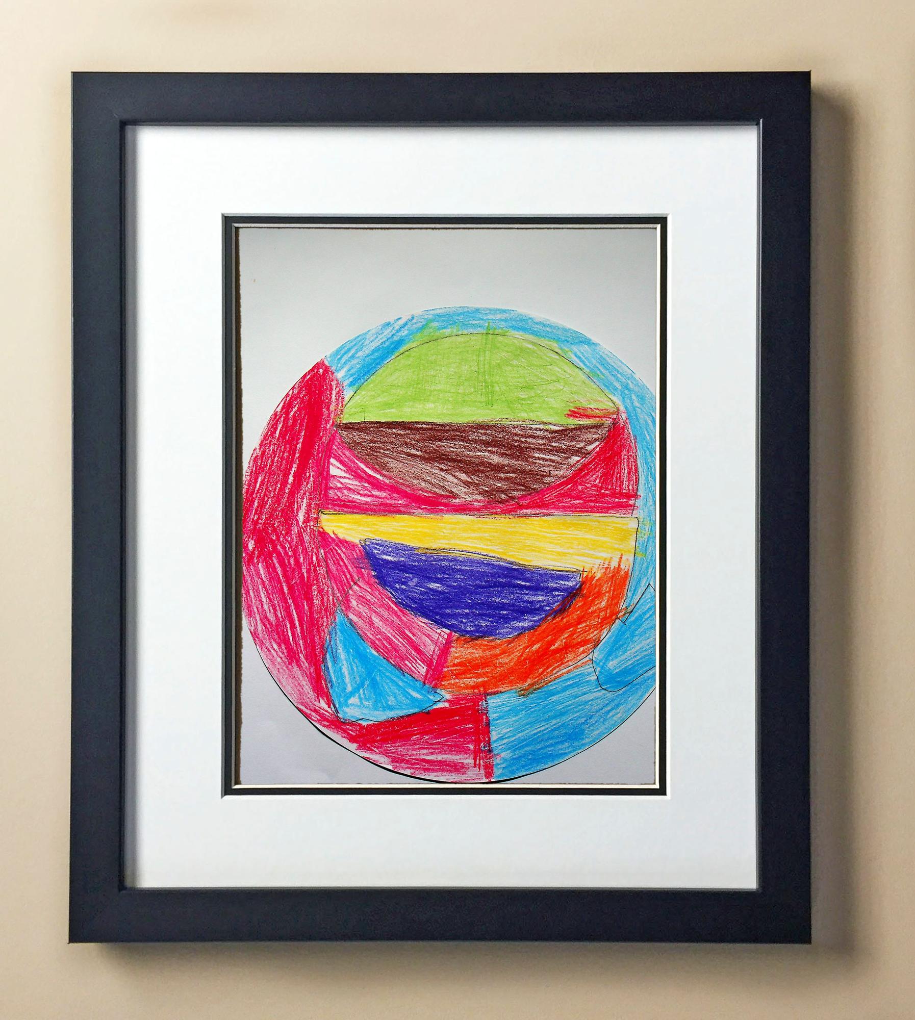 Included with the purchase is the Students Artwork, Frame, double matboard, shatter proof plexiglass, and a ready to hang backerboard with turnbuttons