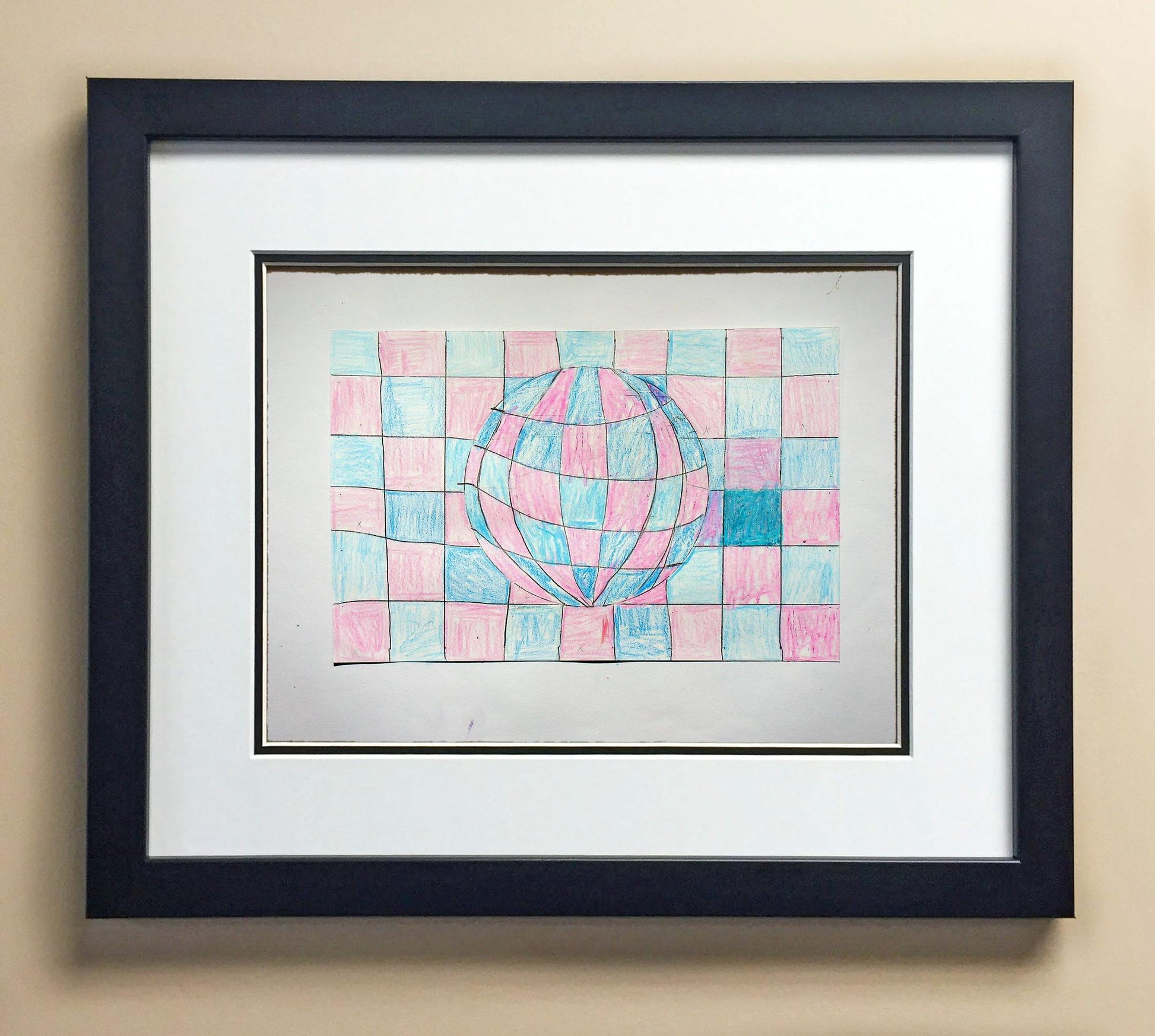 Included with the purchase is the Students Artwork, Frame, double matboard, shatter proof plexiglass, and a ready to hang backerboard with turnbuttons