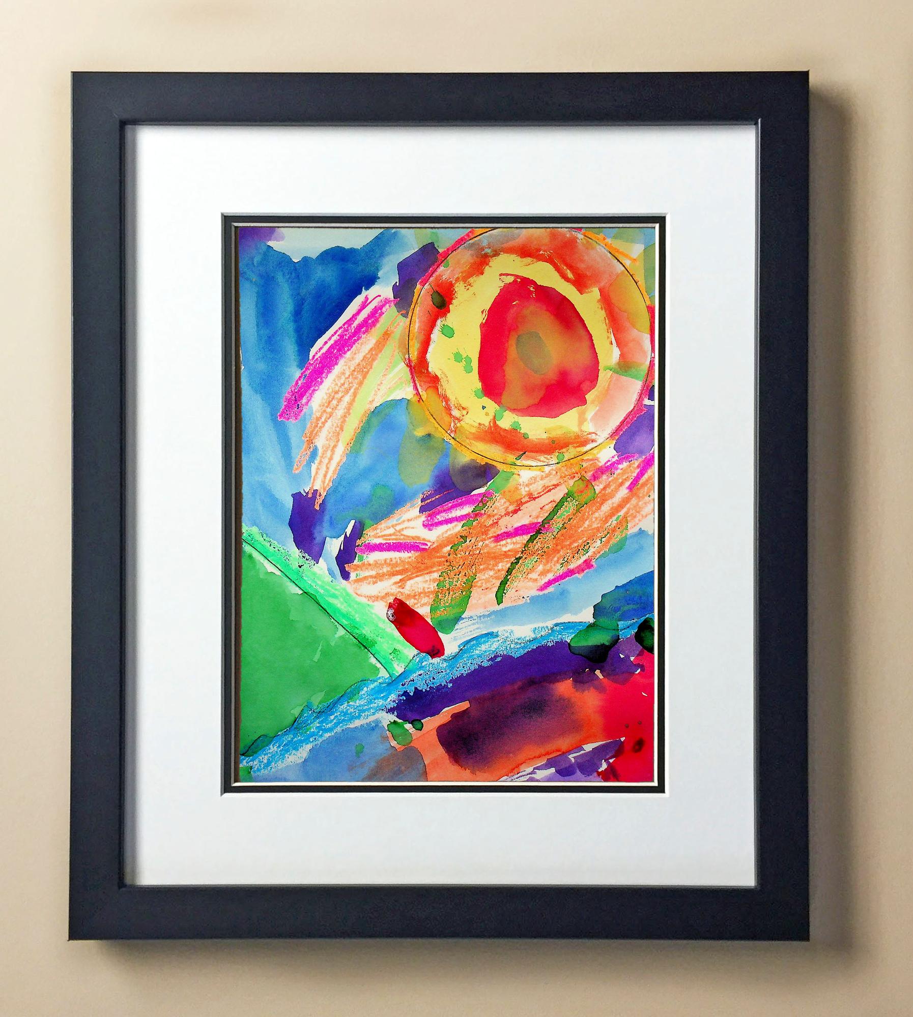 Included with the purchase is the Students Artwork, Frame, double matboard, shatter proof plexiglass, and a ready to hang backerboard with turnbuttons