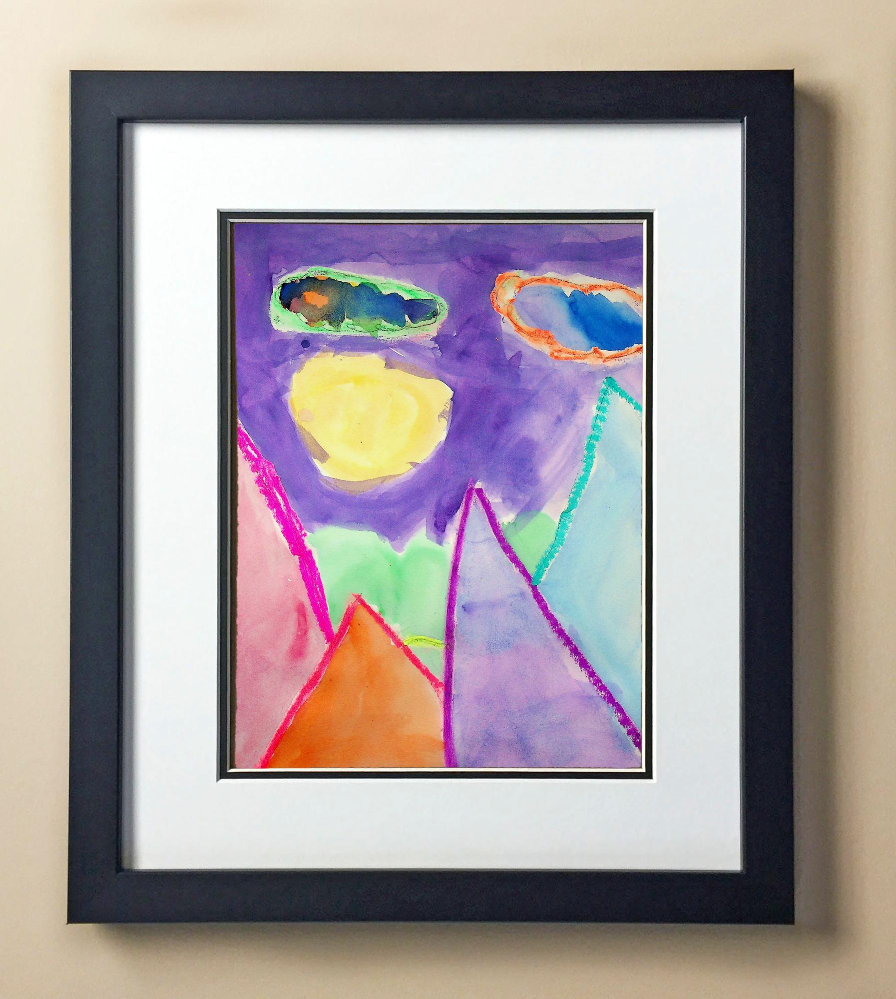 Included with the purchase is the Students Artwork, Frame, double matboard, shatter proof plexiglass, and a ready to hang backerboard with turnbuttons