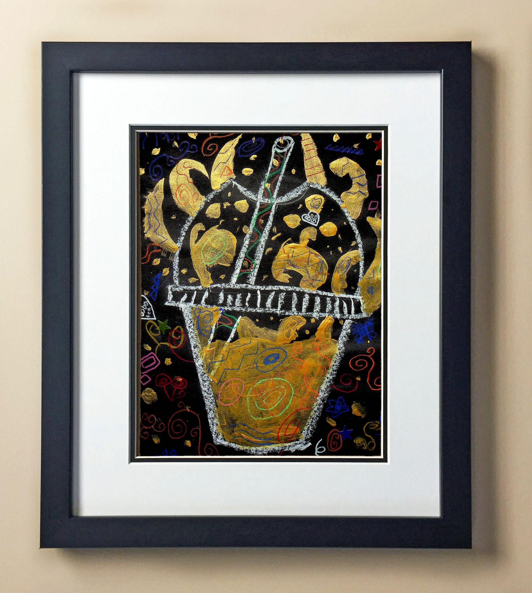 Included with the purchase is the Students Artwork, Frame, double matboard, shatter proof plexiglass, and a ready to hang backerboard with turnbuttons