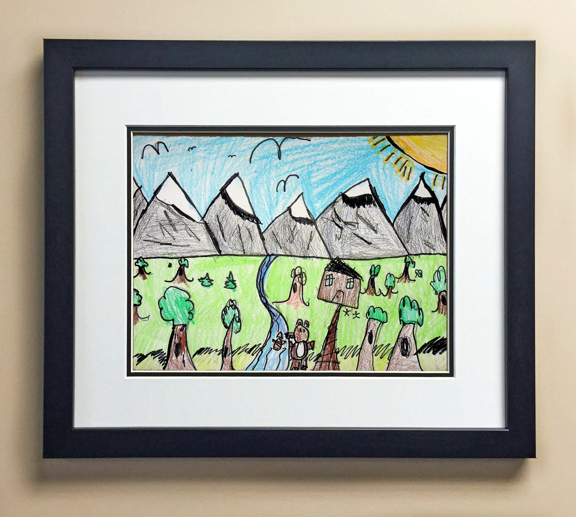 Included with the purchase is the Students Artwork, Frame, double matboard, shatter proof plexiglass, and a ready to hang backerboard with turnbuttons