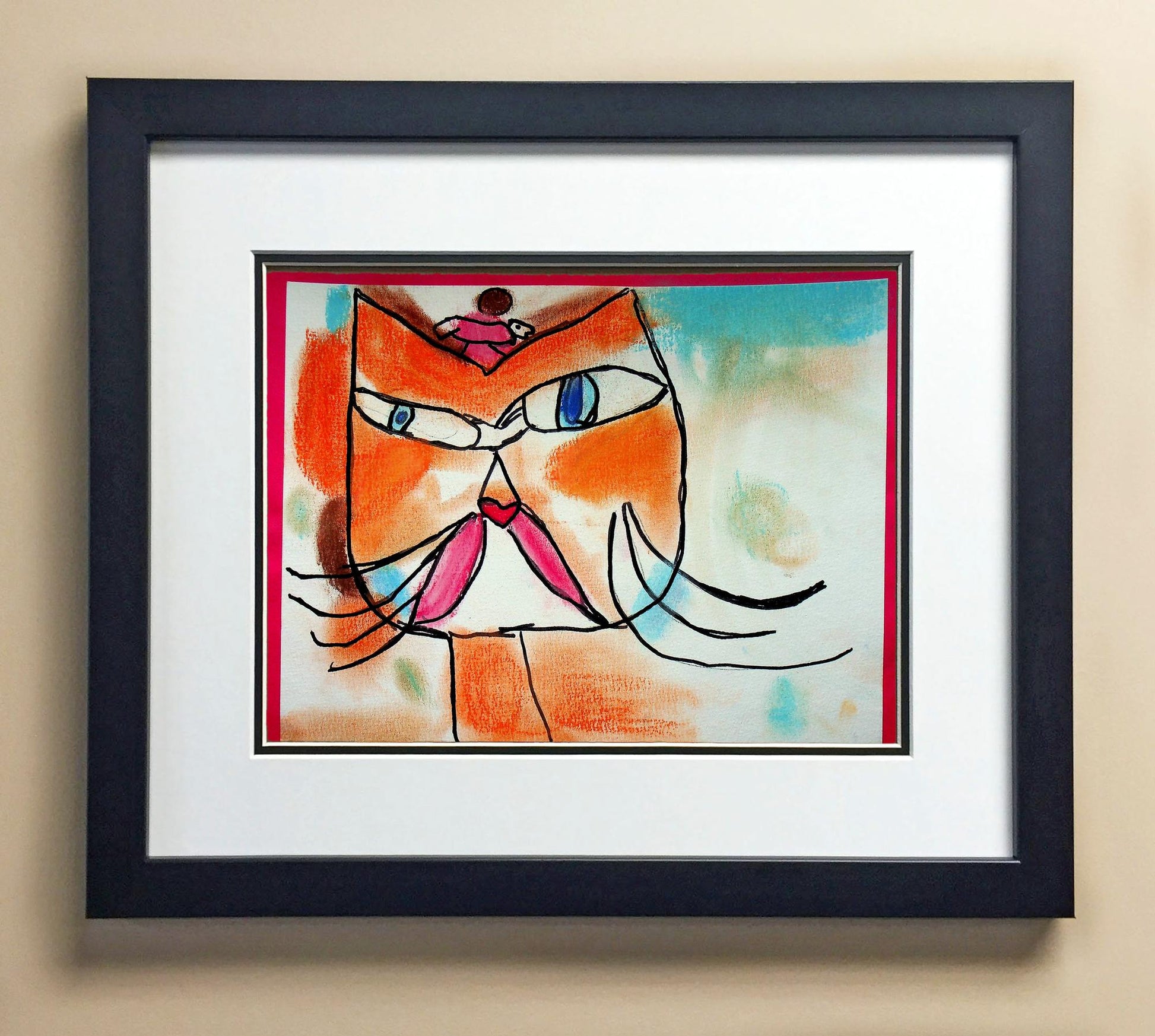 Included with the purchase is the Students Artwork, Frame, double matboard, shatter proof plexiglass, and a ready to hang backerboard with turnbuttons