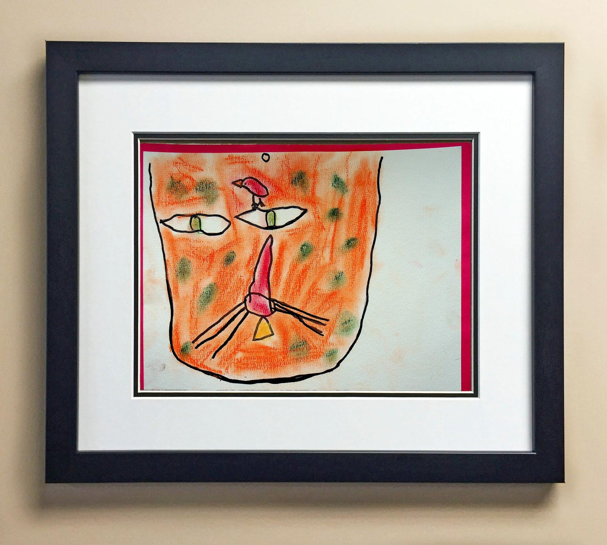 Included with the purchase is the Students Artwork, Frame, double matboard, shatter proof plexiglass, and a ready to hang backerboard with turnbuttons