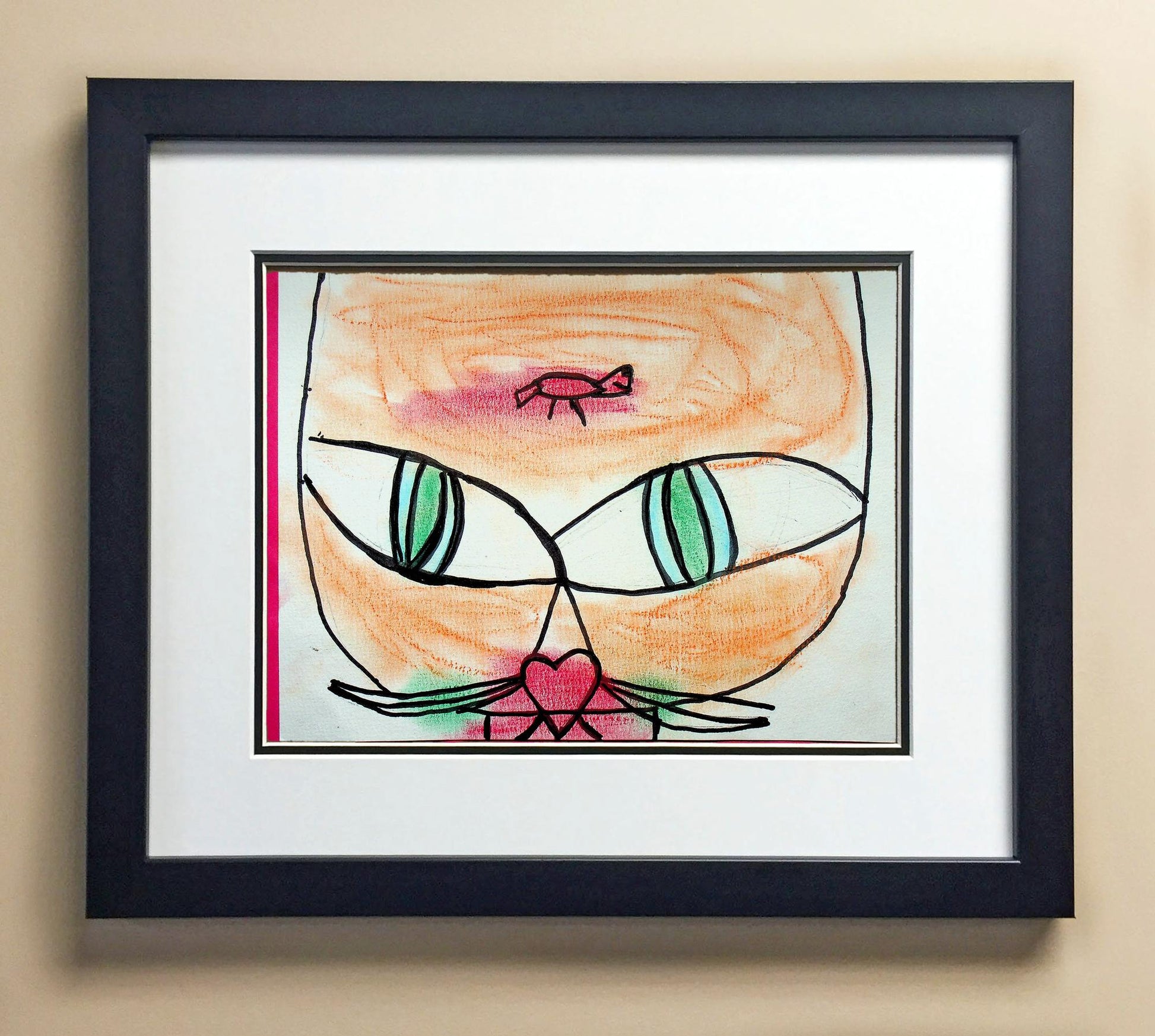 Included with the purchase is the Students Artwork, Frame, double matboard, shatter proof plexiglass, and a ready to hang backerboard with turnbuttons