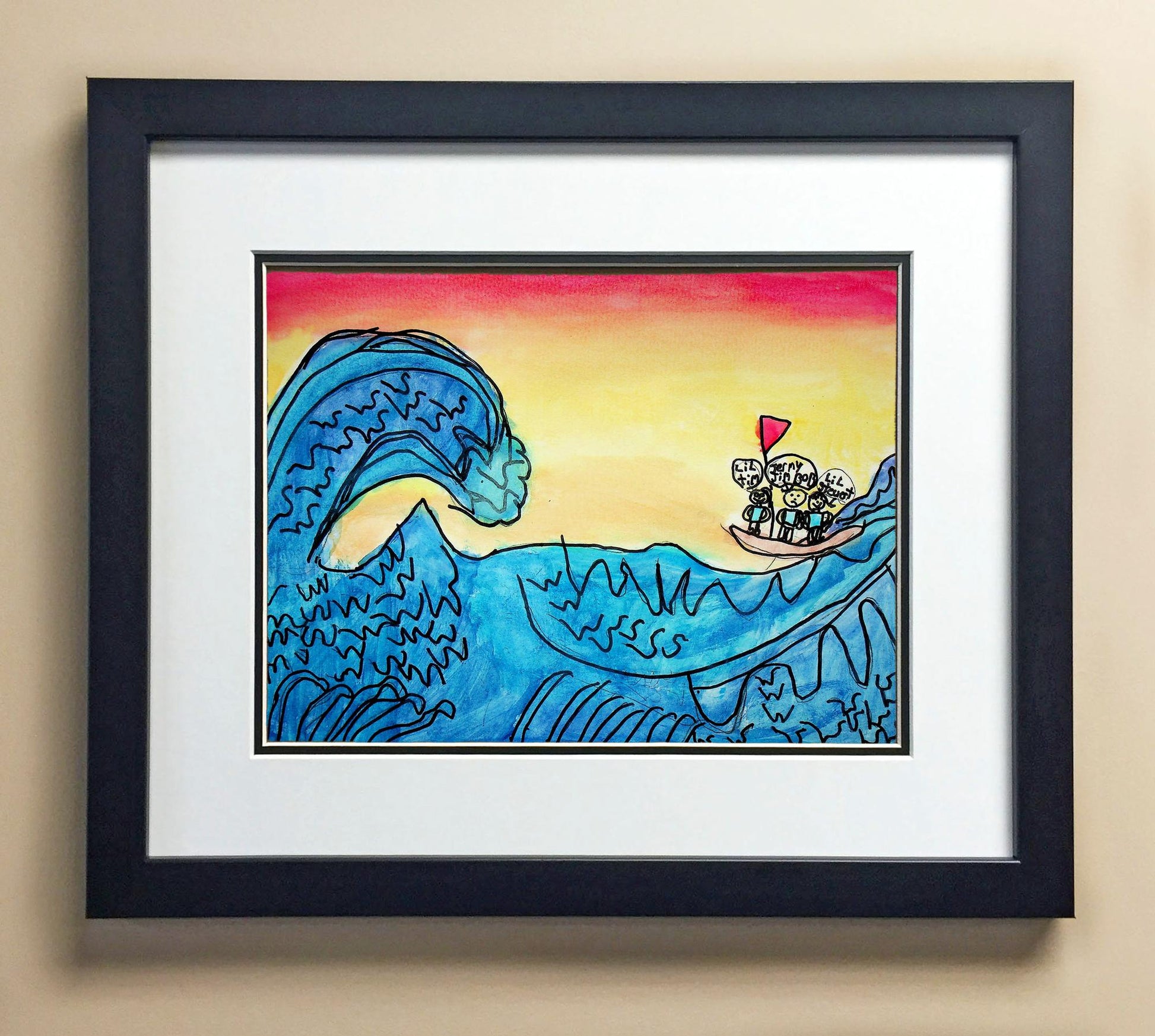 Included with the purchase is the Students Artwork, Frame, double matboard, shatter proof plexiglass, and a ready to hang backerboard with turnbuttons
