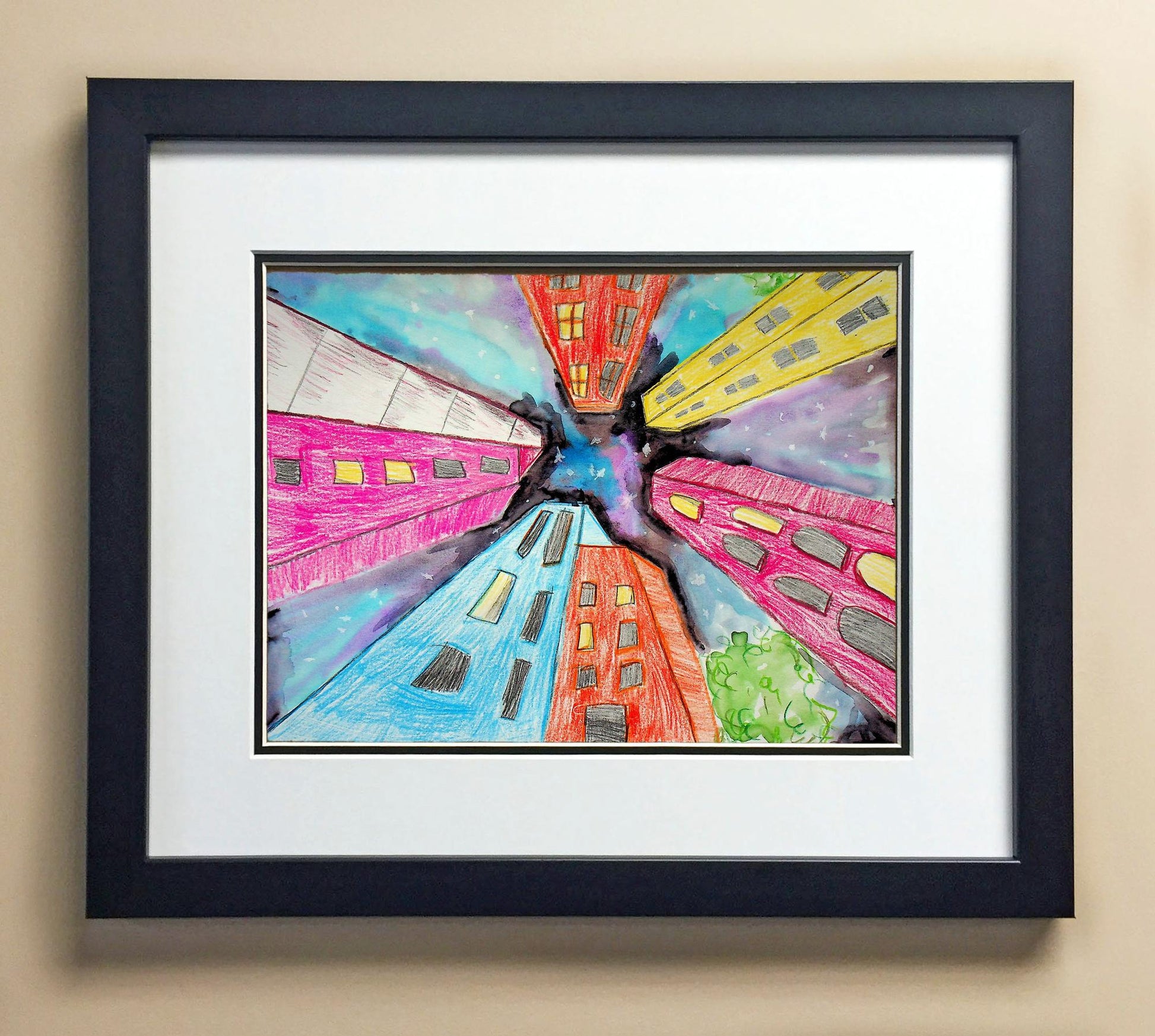 Included with the purchase is the Students Artwork, Frame, double matboard, shatter proof plexiglass, and a ready to hang backerboard with turnbuttons