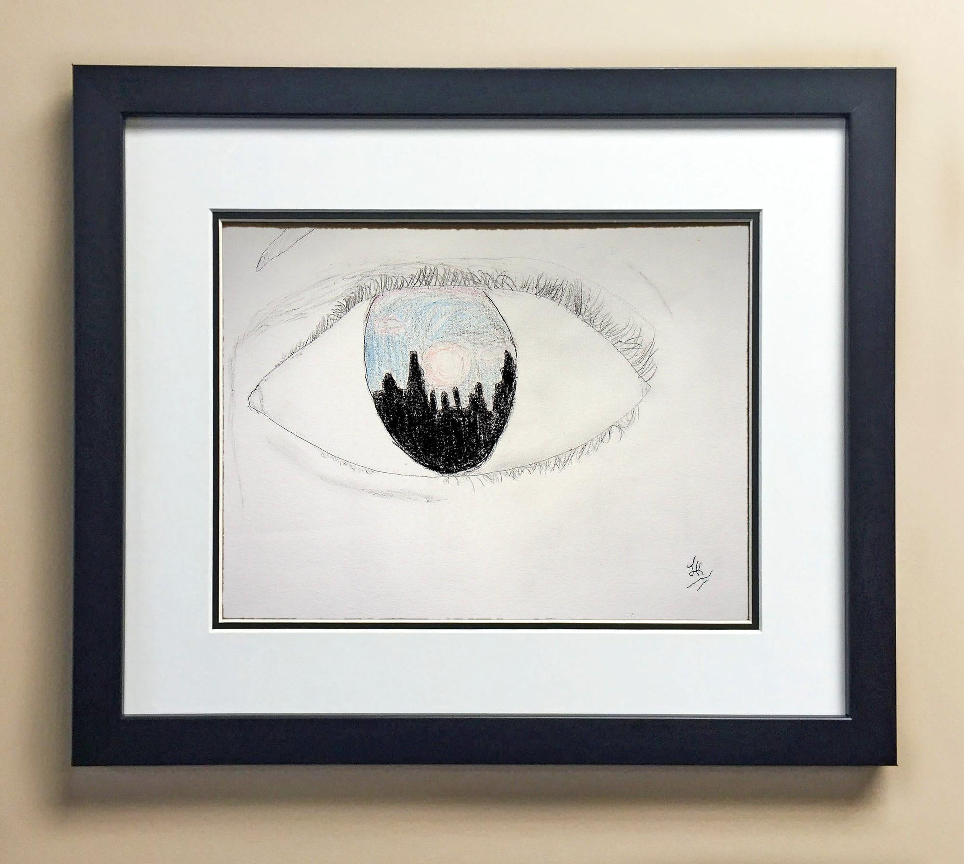 Included with the purchase is the Students Artwork, Frame, double matboard, shatter proof plexiglass, and a ready to hang backerboard with turnbuttons