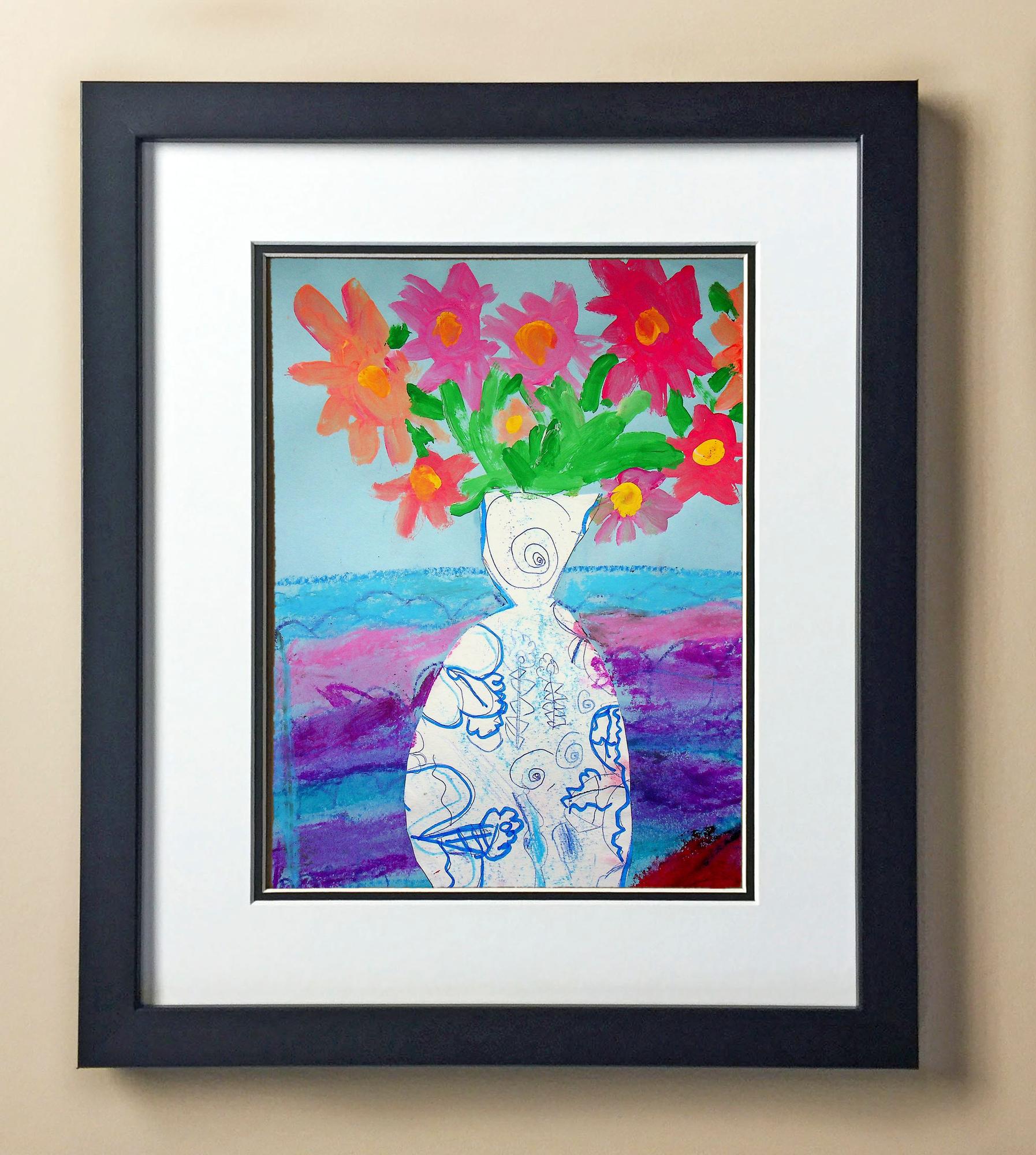 Included with the purchase is the Students Artwork, Frame, double matboard, shatter proof plexiglass, and a ready to hang backerboard with turnbuttons
