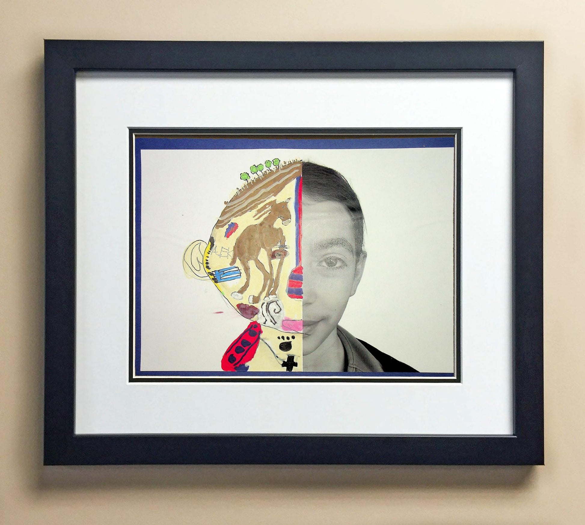 Included with the purchase is the Students Artwork, Frame, double matboard, shatter proof plexiglass, and a ready to hang backerboard with turnbuttons