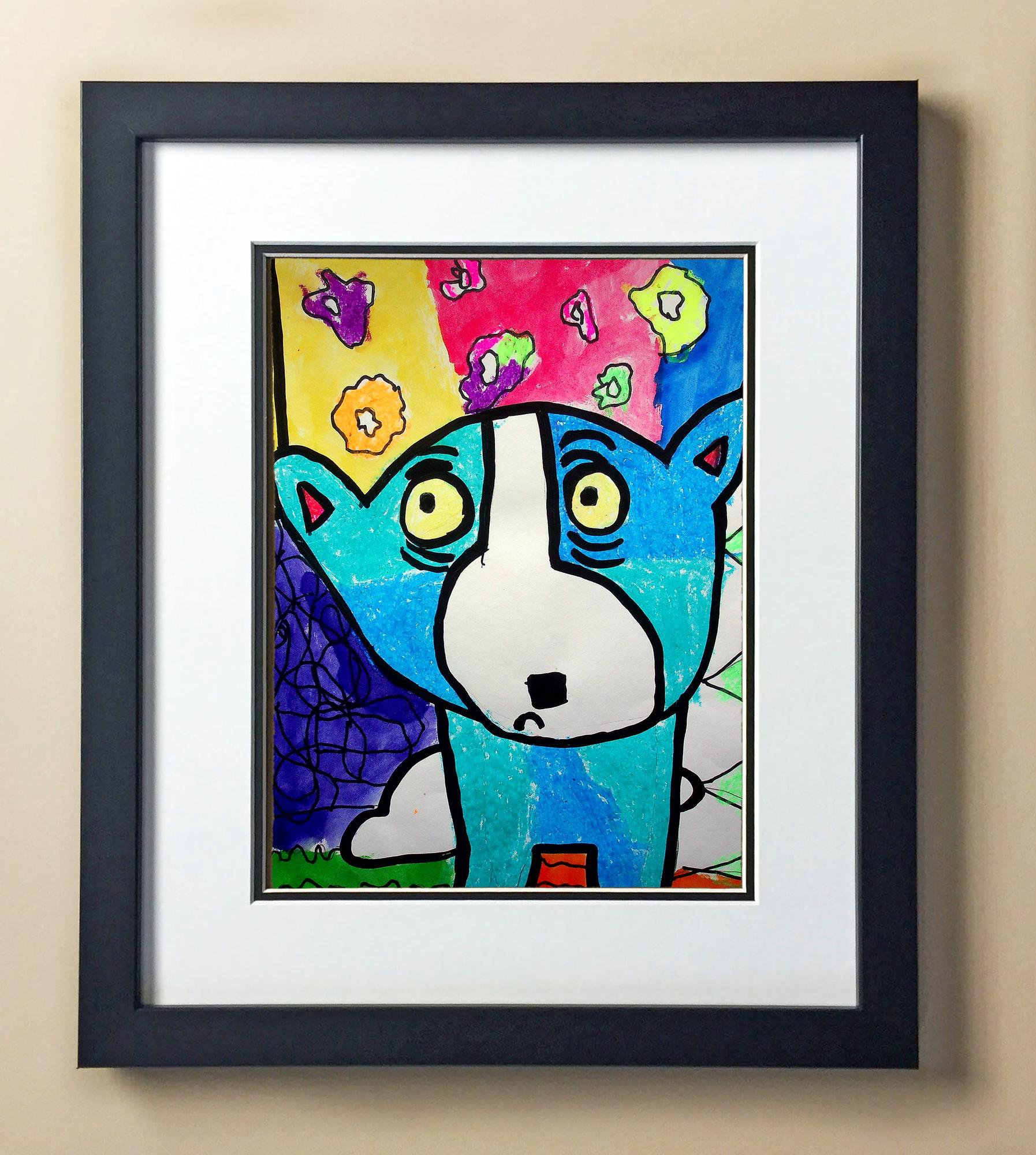 Included with the purchase is the Students Artwork, Frame, double matboard, shatter proof plexiglass, and a ready to hang backerboard with turnbuttons