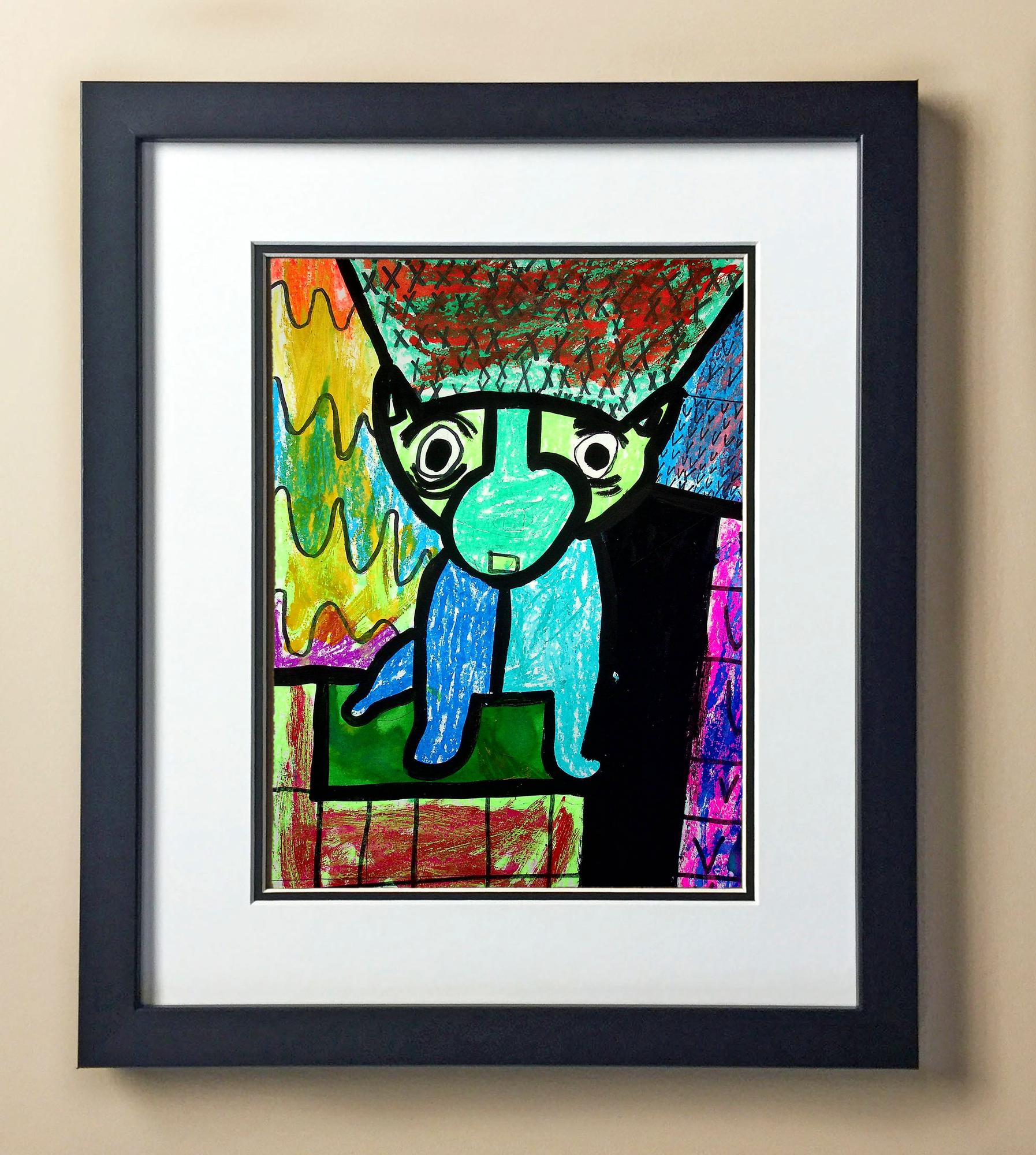 Included with the purchase is the Students Artwork, Frame, double matboard, shatter proof plexiglass, and a ready to hang backerboard with turnbuttons